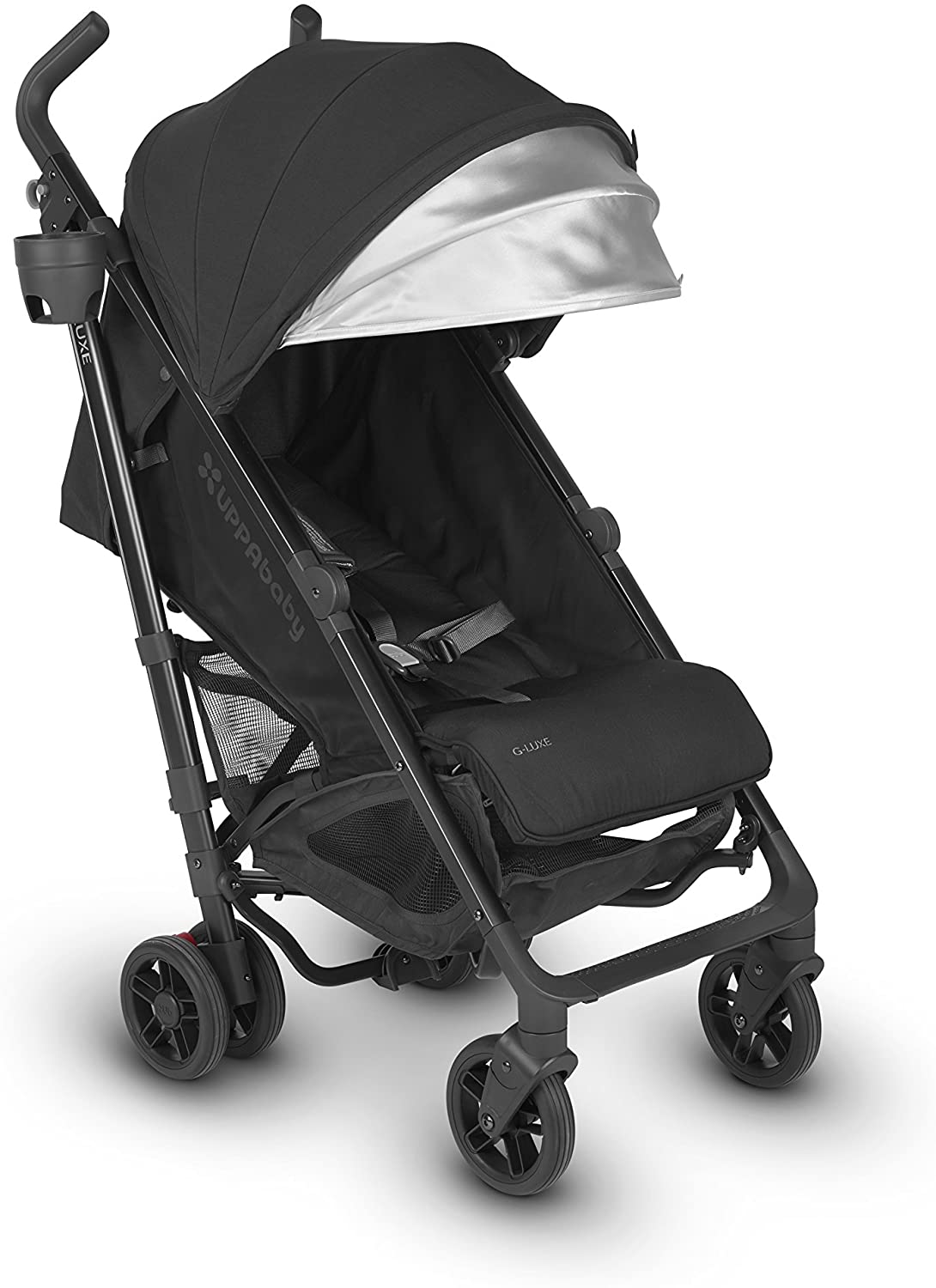 G-LUXE StrollerOne-handed actuated recline and adjustable footrestLarge stretch knit canopy with extendable UPF 50+ sunshade for great sun and wind protectionEasy to remove washable fabricsIncluded cup holder.Seat Orientation:Forward FacingStands when foldedThe UPPAbaby G-LUXE lightweight umbrella stroller provides flexibility every parent needs Whether an ideal companion for running errands or the perfect ride for catching the sites while your little one reclines for a quiet nap, the G-LUXE has your travel needs covered At just 15lbs you can easily pick up and carry over your shoulder or fold to a standing position and tuck into the corner. Lightweight aluminum frame with robust profile One-handed actuated recline and adjustable footrest High-performance, 5.75" diameter wheels Shock-absorbing, 4-wheel suspension One-step brake Ergonomic, PVC handles for comfort and easier pushing Hand-level folding triggers-no foot action required Large stretch knit canopy with extendable UPF 50+ sunshade for great sun and wind protection Stands when folded Easy to remove washable fabrics Convenient carry strap 5-point harness Updated large, easy-access basket with 10 lb. weight limit Removable cup-holder included