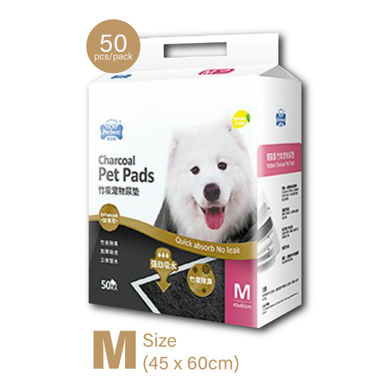 PETBEST Charcoal Absorbent Pee Pad - Medium, 50 Piece Set