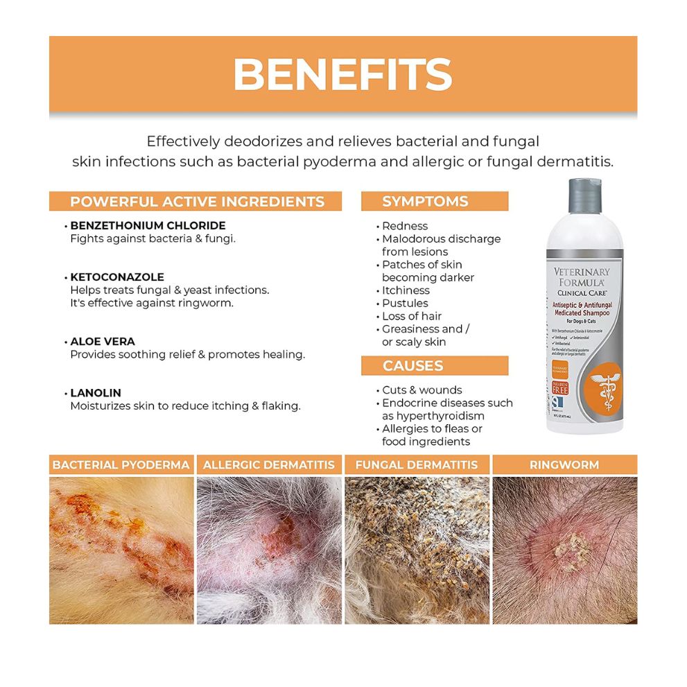 Veterinary Formula Clinical Care Antiseptic and Antifungal Shampoo - For Dogs and Cats 16oz