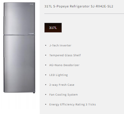 - Net Capacity (Freezer/Fridge): 315L (240L/75L)