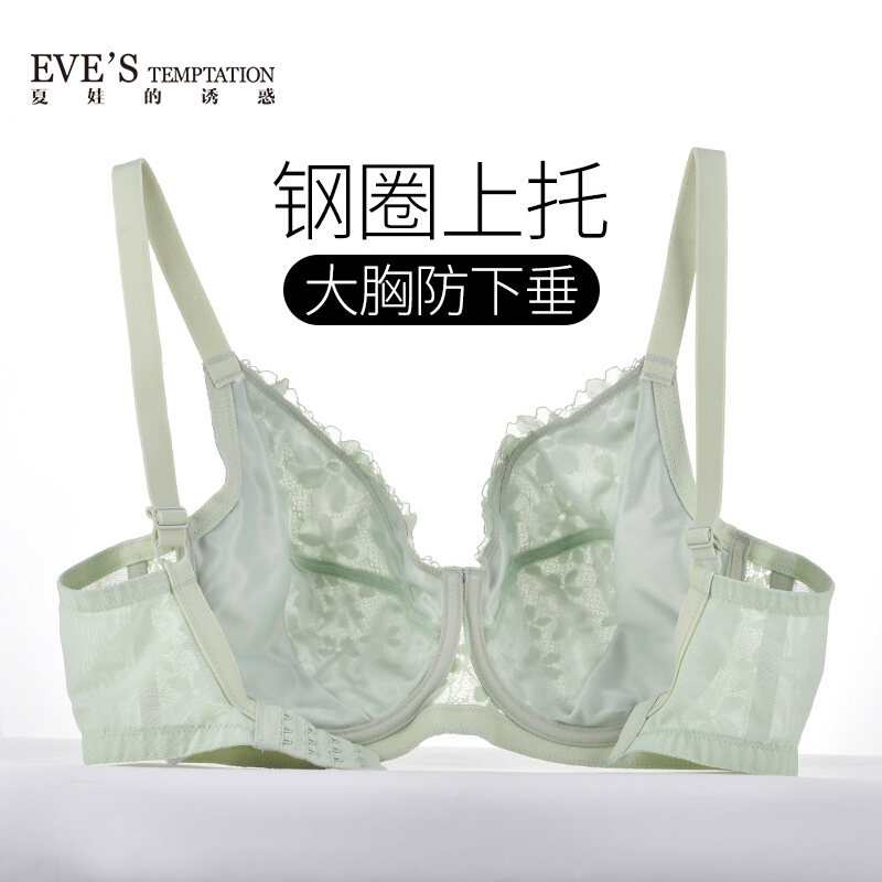 Eve's Temptation Aili Underwear Women's Big Chest Show Small and Thin Lace Widened Push up Summer Large Cup Large Size Bra