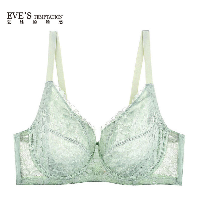 Eve's Temptation Lace Large Cup Bra Women's Big Chest Underwear Large Size Bra for Plump Girls Thin Full Cup Bra