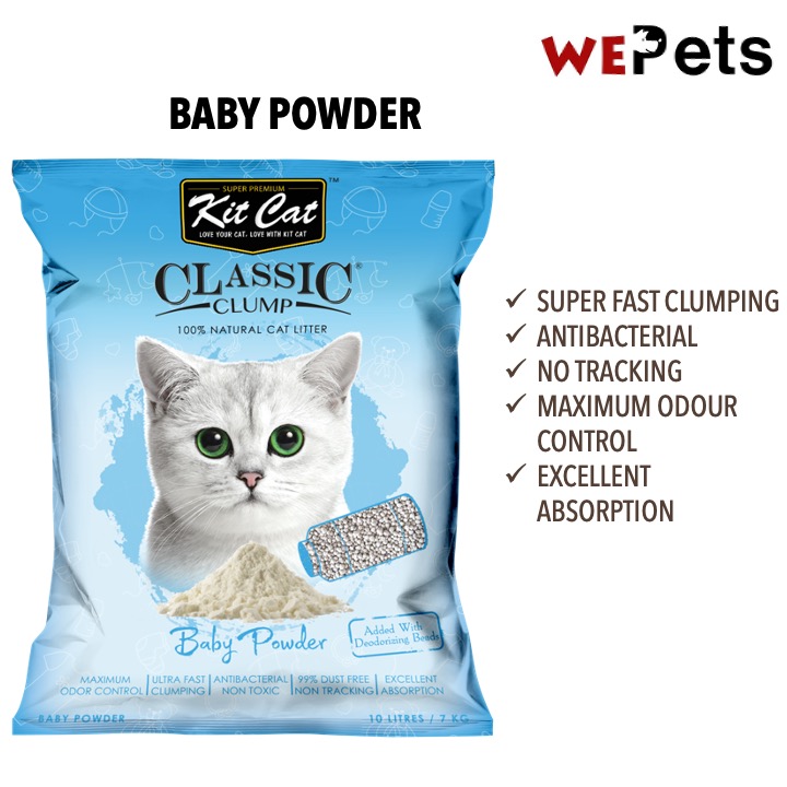 KitCat all-natural cat litters are made from 100% Sodium Bentonite and enhanced with perfume silica beads for superior odour control and maximum moisture absorbency, providing excellent odour control and ease of cleaning. Its superior quick-clumping abilities make clean up a breeze. Just simply scoop the clump and throw it away. The rest of the litter remains clean, odourless and ready to reuse, making it a very economical and environmentally friendly choice and also minimizes dust and tracking around your home!