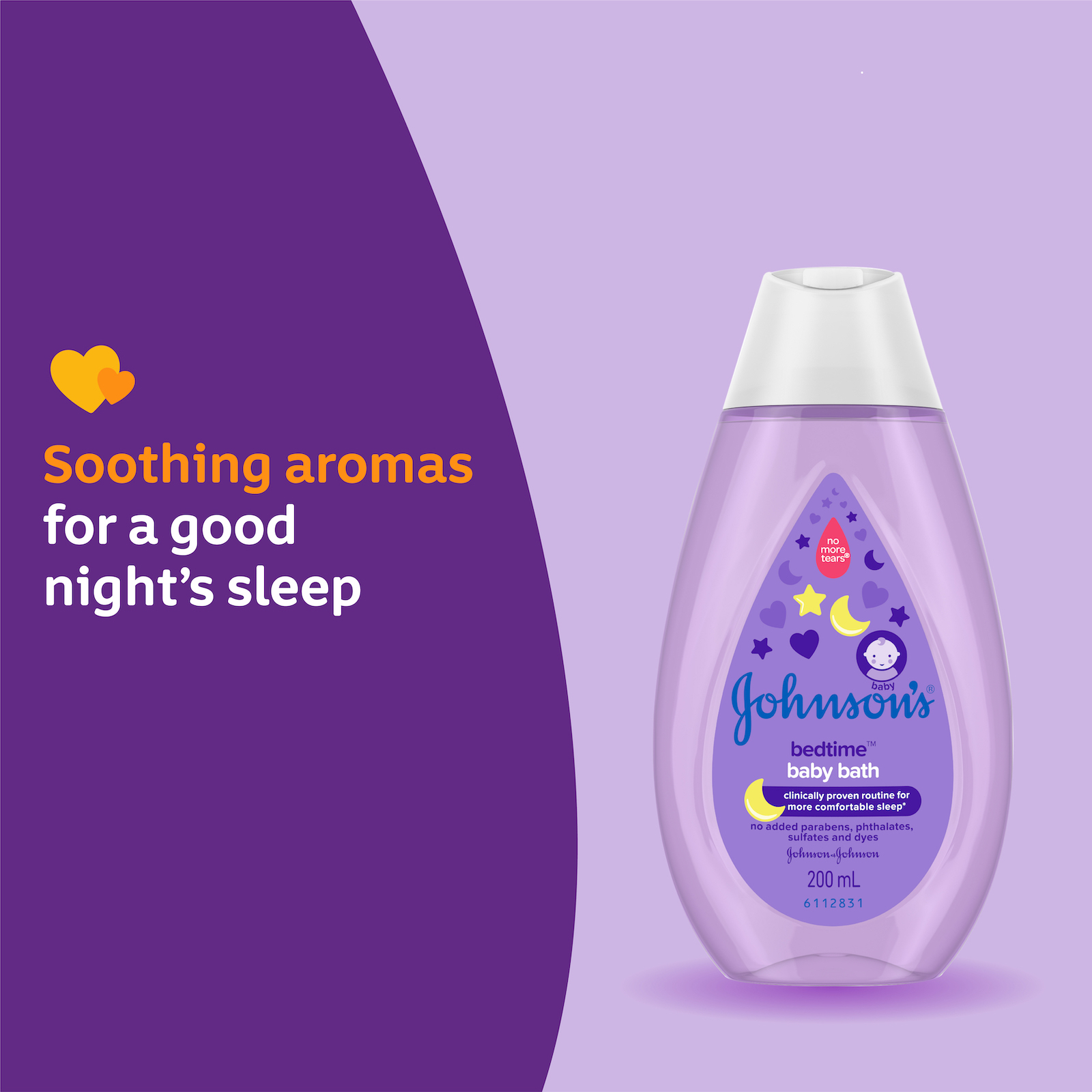 Johnson's® Bedtime™ baby bath with NaturalCalm® essence, clinically proven to help calm and comfort baby before sleep*(Did you know?) A soothing nightly ritual can help send your growing baby to dreamland. Our product compliments your baby’s bedtime routine for a comfortable night’s sleep.*Based on baby’s bedtime routineBenefits of productClinically proven to help calm and comfort baby before sleep**Based on baby’s bedtime routineBenefits of IngredientsWith NaturalCalm® aroma of Jasmine and Lily that calms baby before sleepHow-to-UseRemove seal to open. Wet baby's body with warm water, apply bath with your hand, wash cloth or puff, gently lather & rinse.Possible RegimeFor best bonding experience, we recommend that you cleanse your baby with JOHNSON'S® Baby Bath, moisturize with JOHNSON'S® Baby Lotion and then freshen her with JOHNSON'S® Baby Powder