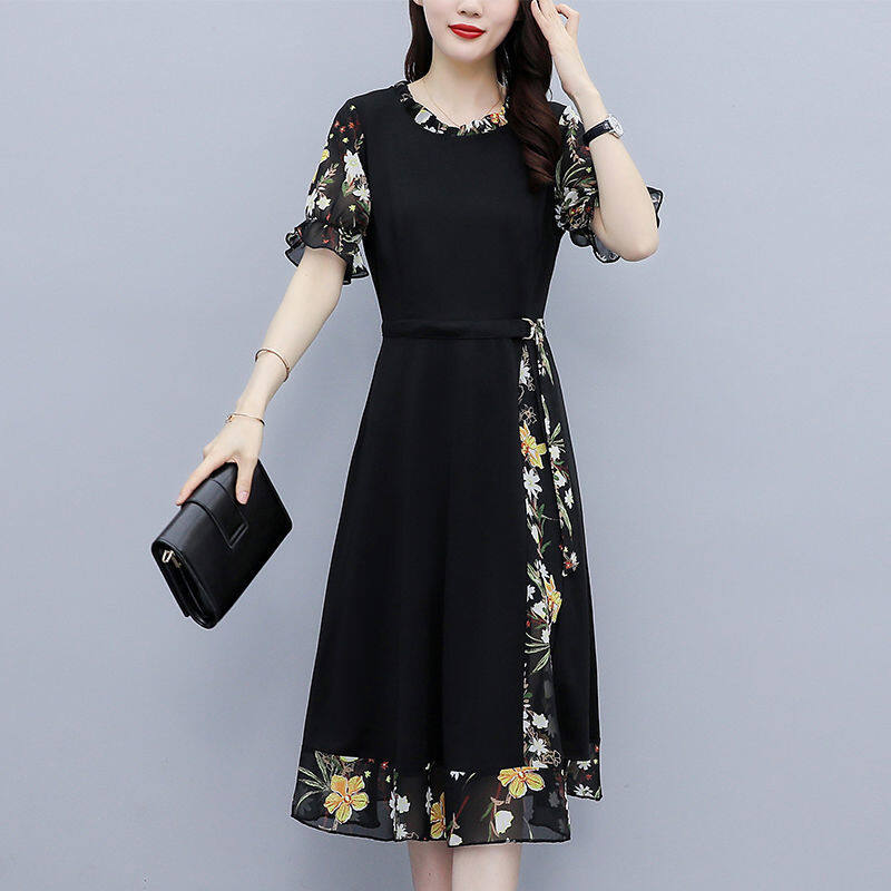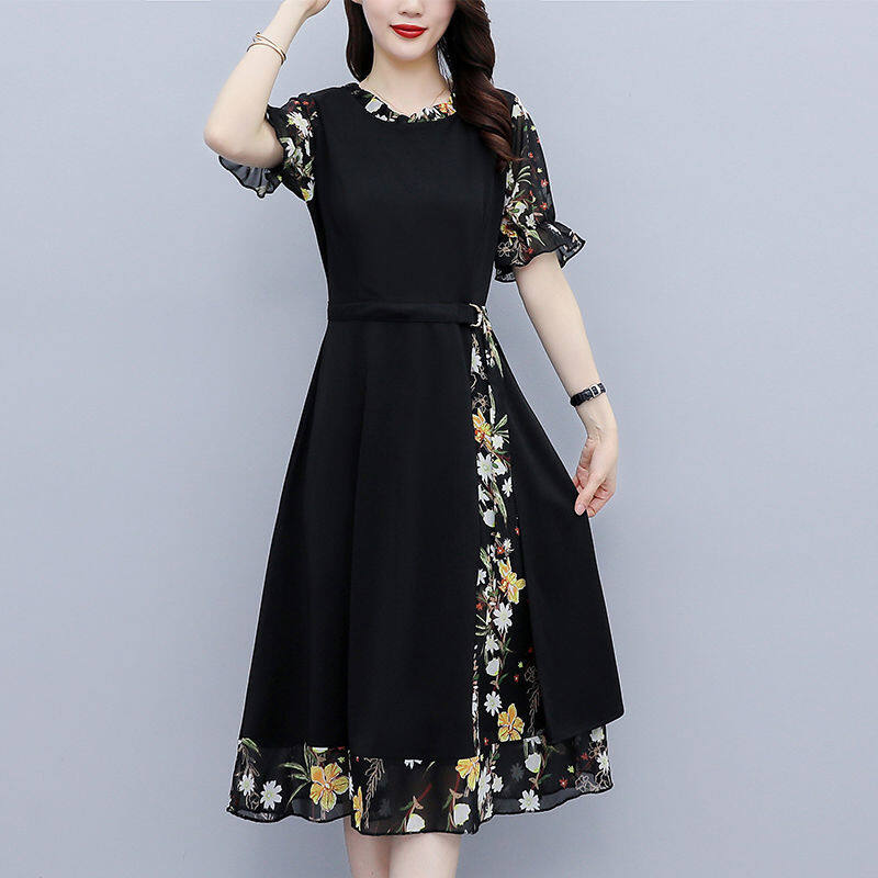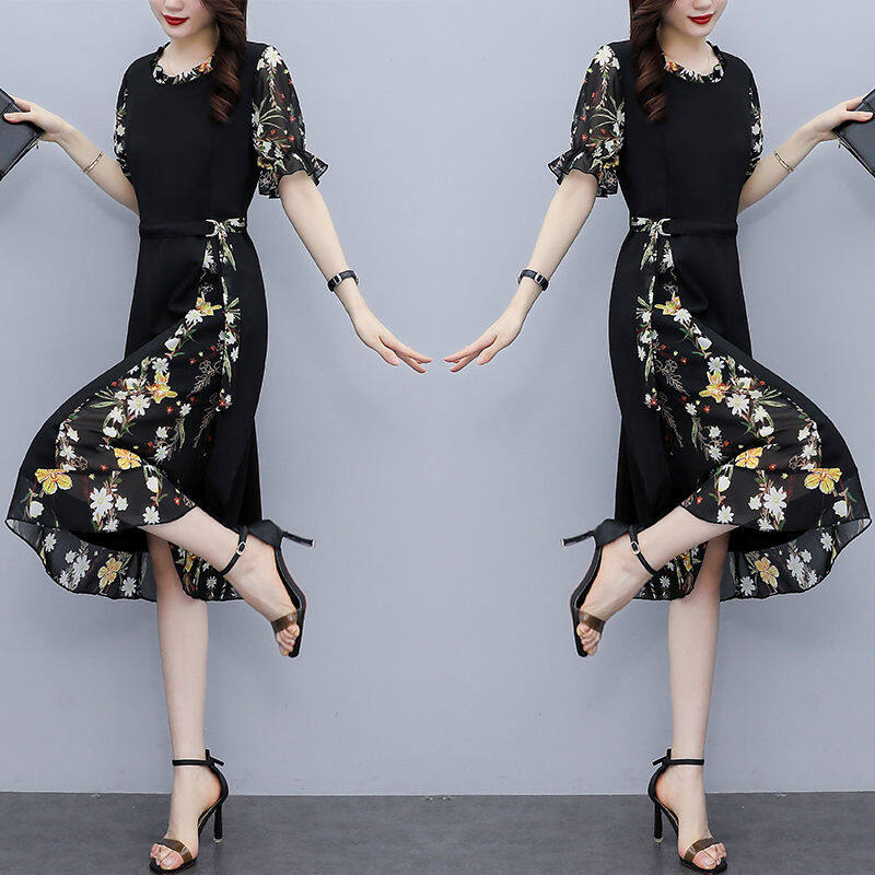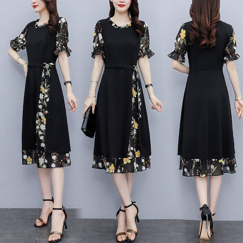 Chiffon Stitching Dress Women's Summer Dress New Popular Plus Size Women's Fat Mm Slim Slim Temperament Skirt