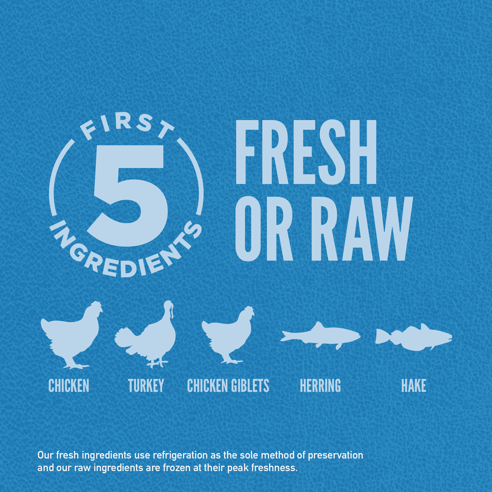 • The first 5 ingredients are fresh or raw3poultry and fish ingredients.