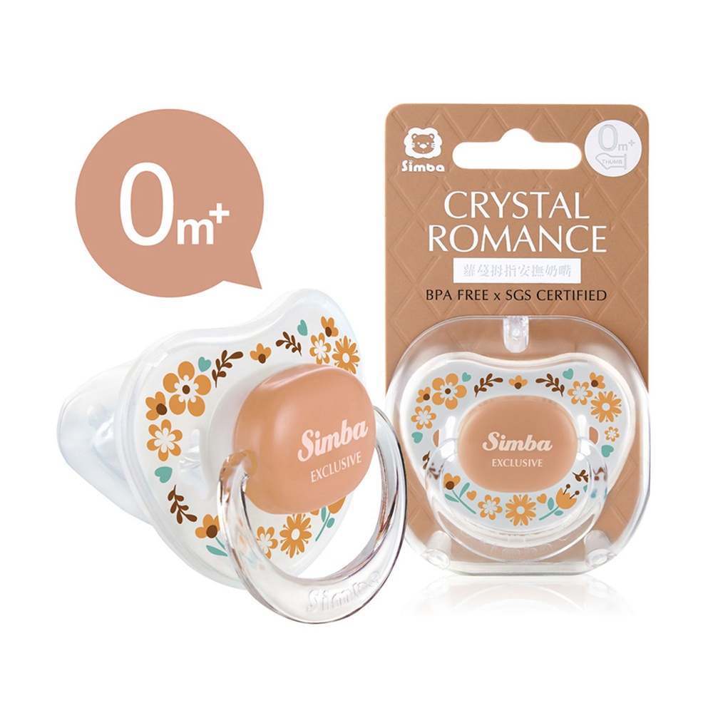 Simba Crystal Romance Pacifier Ergonomic thumb shaped pacifier that is designed for baby’s natural jaw and teeth shape. Groove design prevents saliva adhesion between lips and pacifier. Its smile curve design with round edges gives baby the ultimate comfort. Hygienic case included. BPA-free and SGS-certified material.