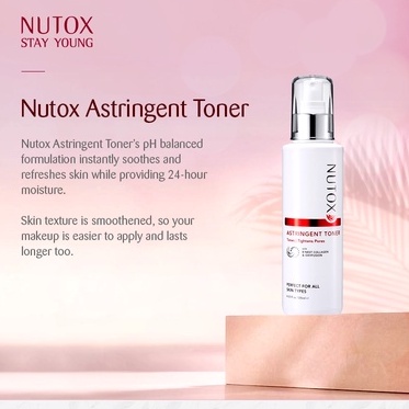 Nutox Astringent Toner’s pH balanced formulation instantly soothes and refreshes skin while providing 24-hour moisture to refine and tighten pores. Skin texture is smoothened, so your makeup is easier to apply and lasts longer too.