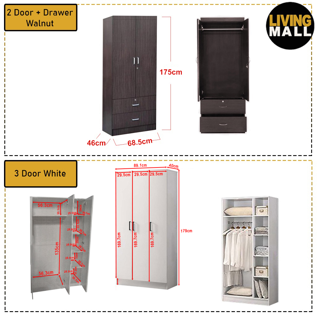 3 Door White - L 89.1. x D 40. x H 179 cm