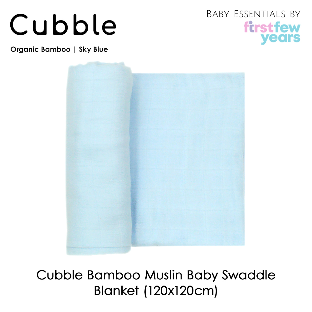 Cubble Bamboo Muslin Baby Swaddle Blanket (120x120cm) | Multiple Colors