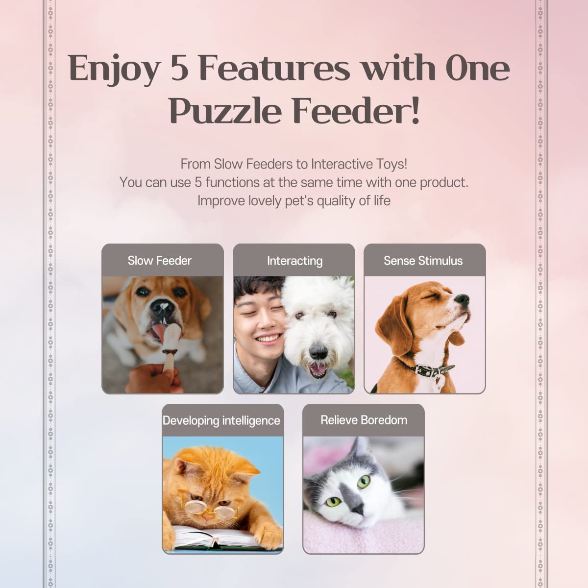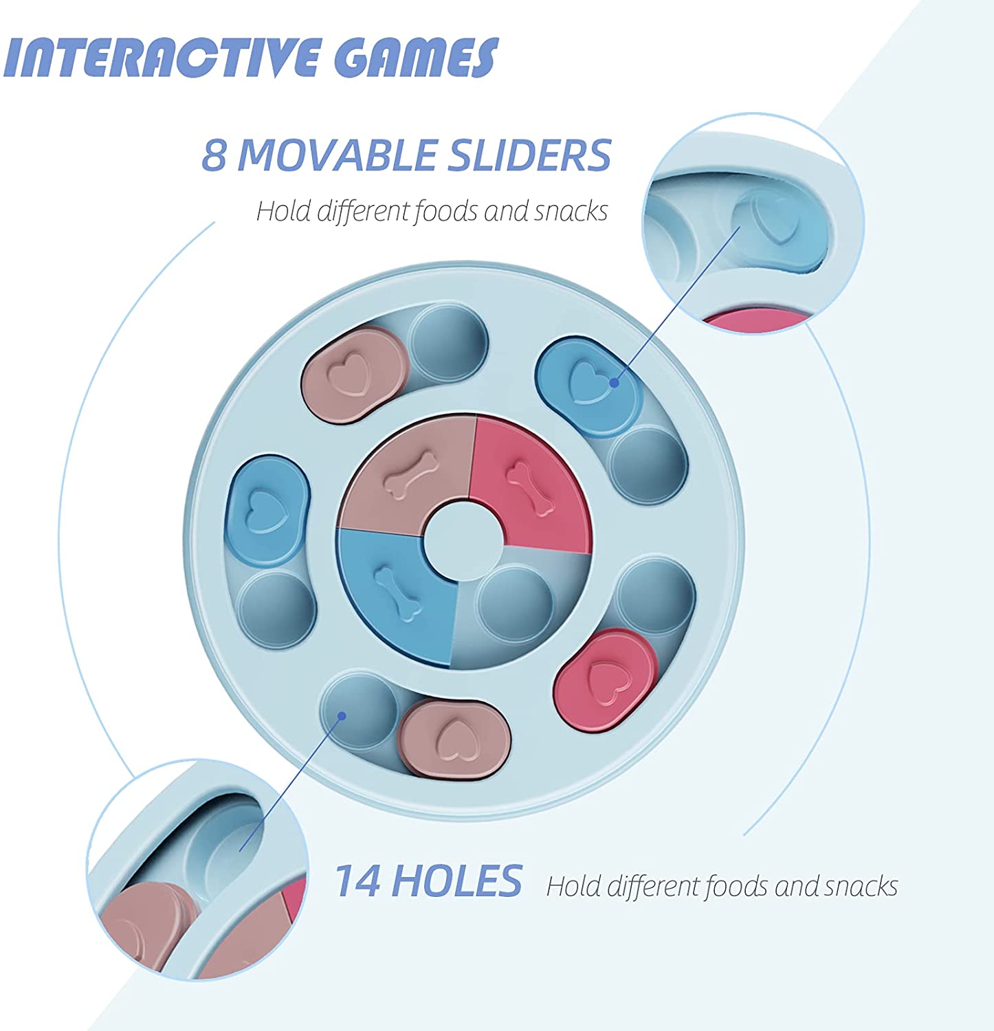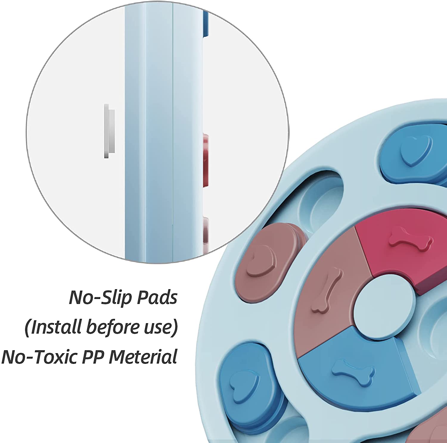 ⭐FUN & INCREASE IQ SLOW FEEDING: Equipped with small sections to hold pet food separately, let your pet to find the food section and adjust to the correct position to eat. Prevent your dog from eating too fast and reduce choking risks, also add fun and IQ training when feeding your dog or cat.
