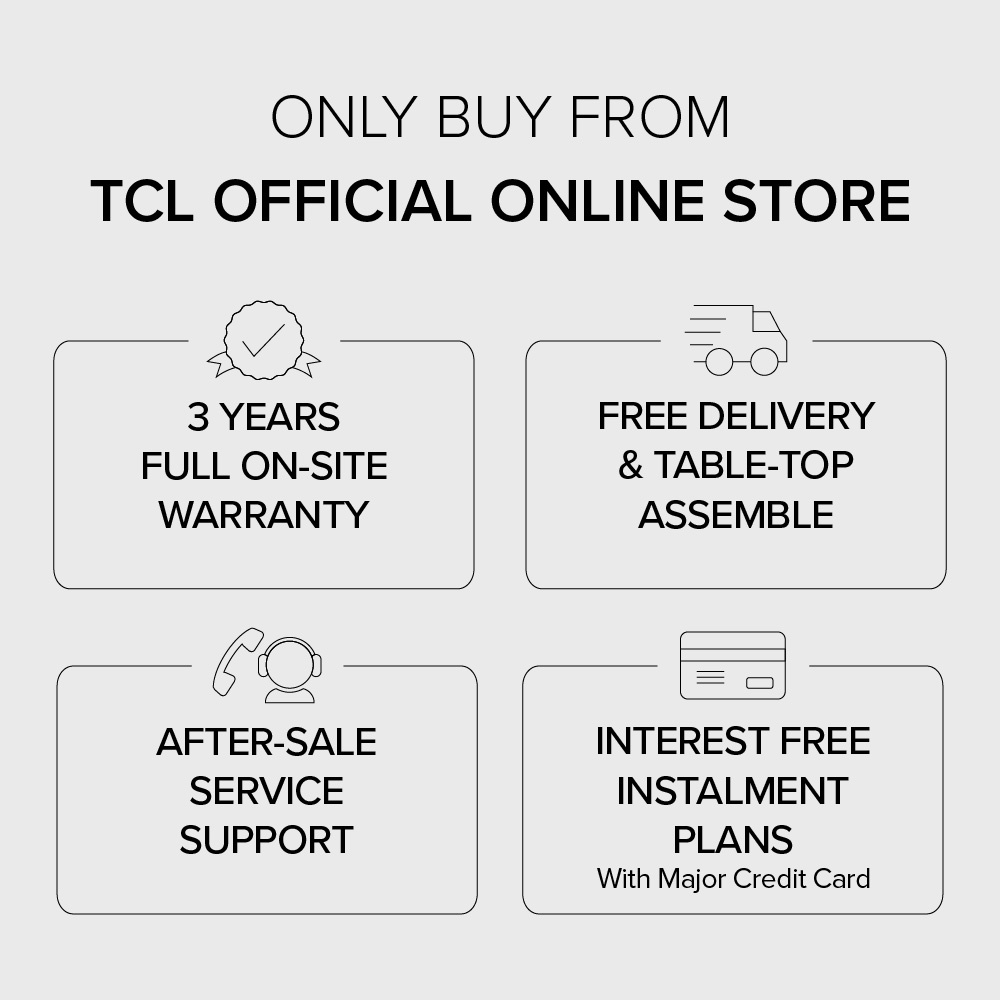 TCL will not hold responsibility nor be held responsible for lack of compatibility between purchased TV and third party wall brackets during installation and wall-mounting.