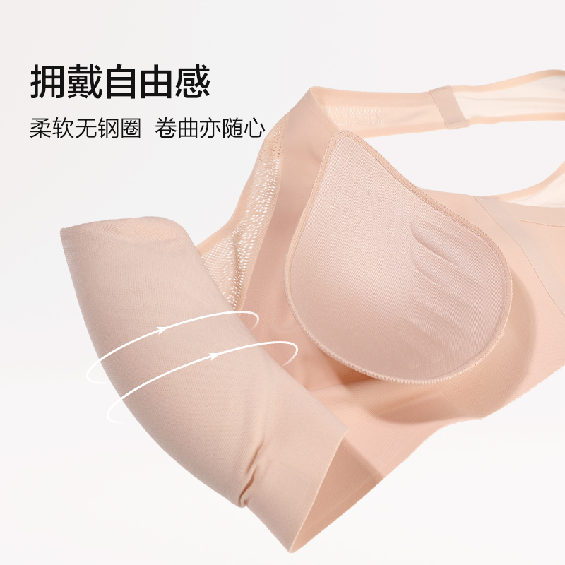 Seamless vest-style bra to free the bustLightweight cups, tank top, wireless, netted edgesOne-piece woven lace with romantic details and reduced marks3cm shoulder straps to reduce shoulder pressure