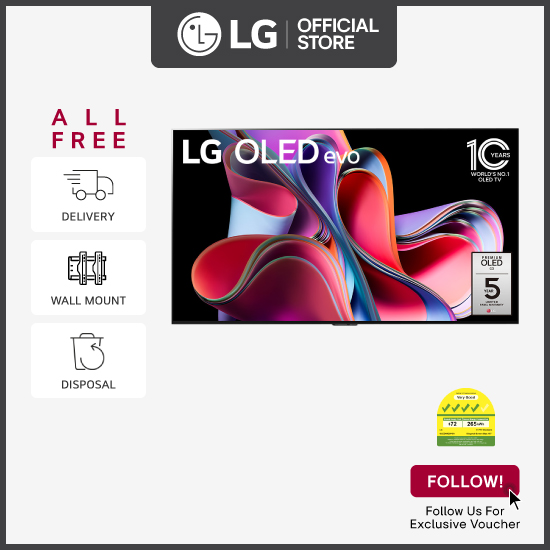 [Bulky] LG OLED65G3PSA 65'' OLED evo G3 4K Smart TV + Free Delivery + Free Wall Mount Installation worth up to $200 + Free Disposal