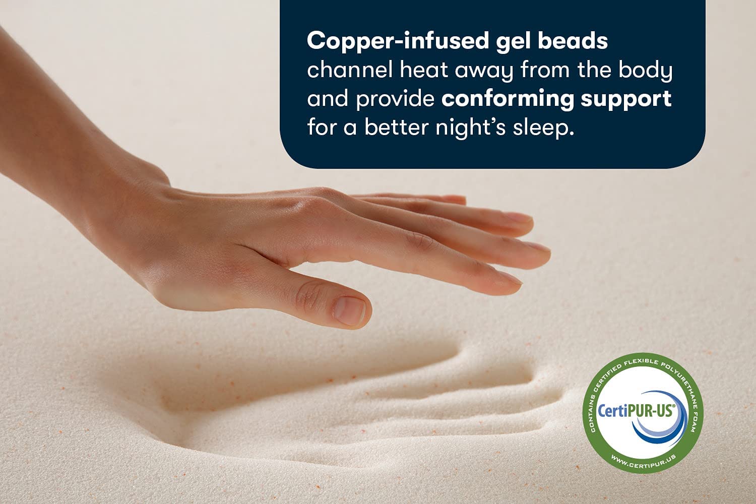 - Copper infused gel beads channel heat away from the body and provide conforming support for a better night's sleep