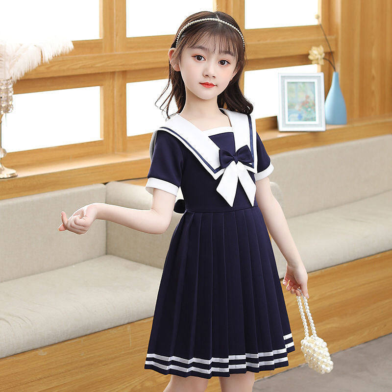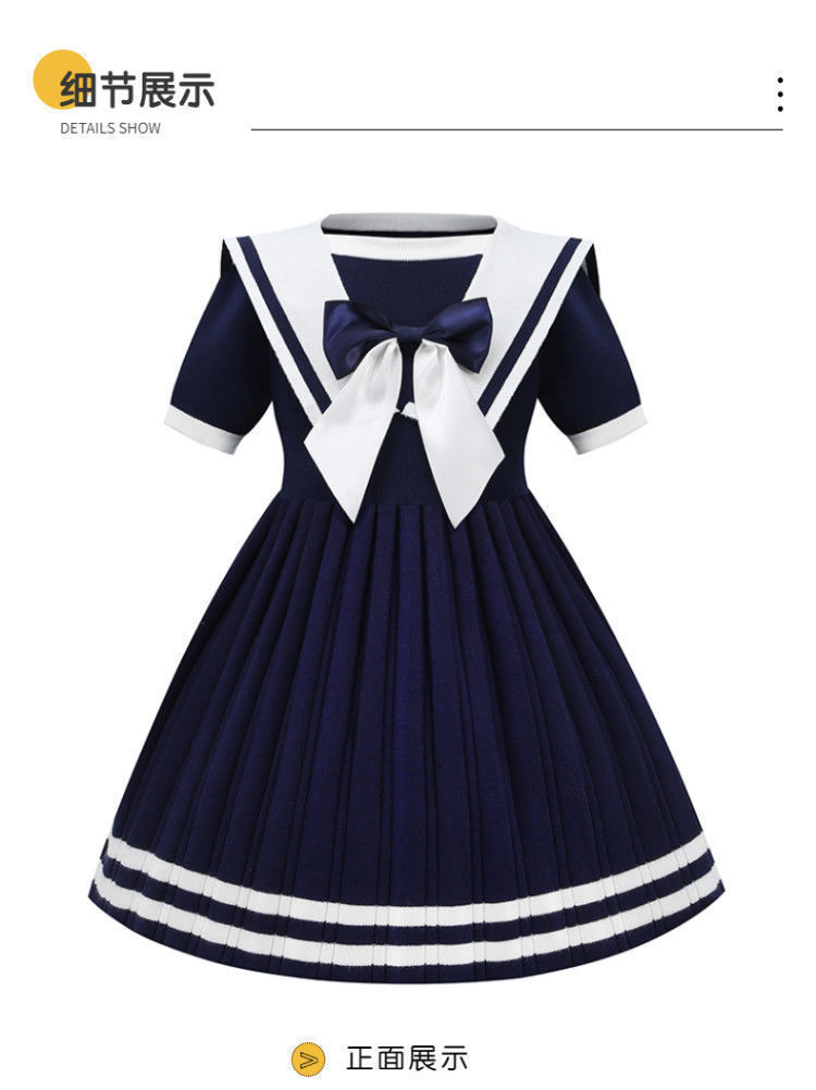 This girl's short-sleeved dress is perfect for summer. It has a stylish design that will make your child look like a princess in a Lolita or JK fashion. The navy blue color fits well with the nautical theme, and the dress has a playful and elegant feel to it. Made for young girls, this dress is perfect for any dress-up occasion, from parties to family gatherings.
