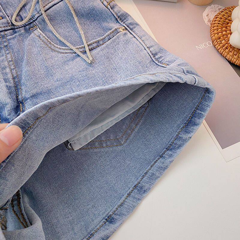 Free Delivery of Women's Denim Shorts Korean Version with High Waistband, Slim Fit and Versatile Personality Wide Leg Pants