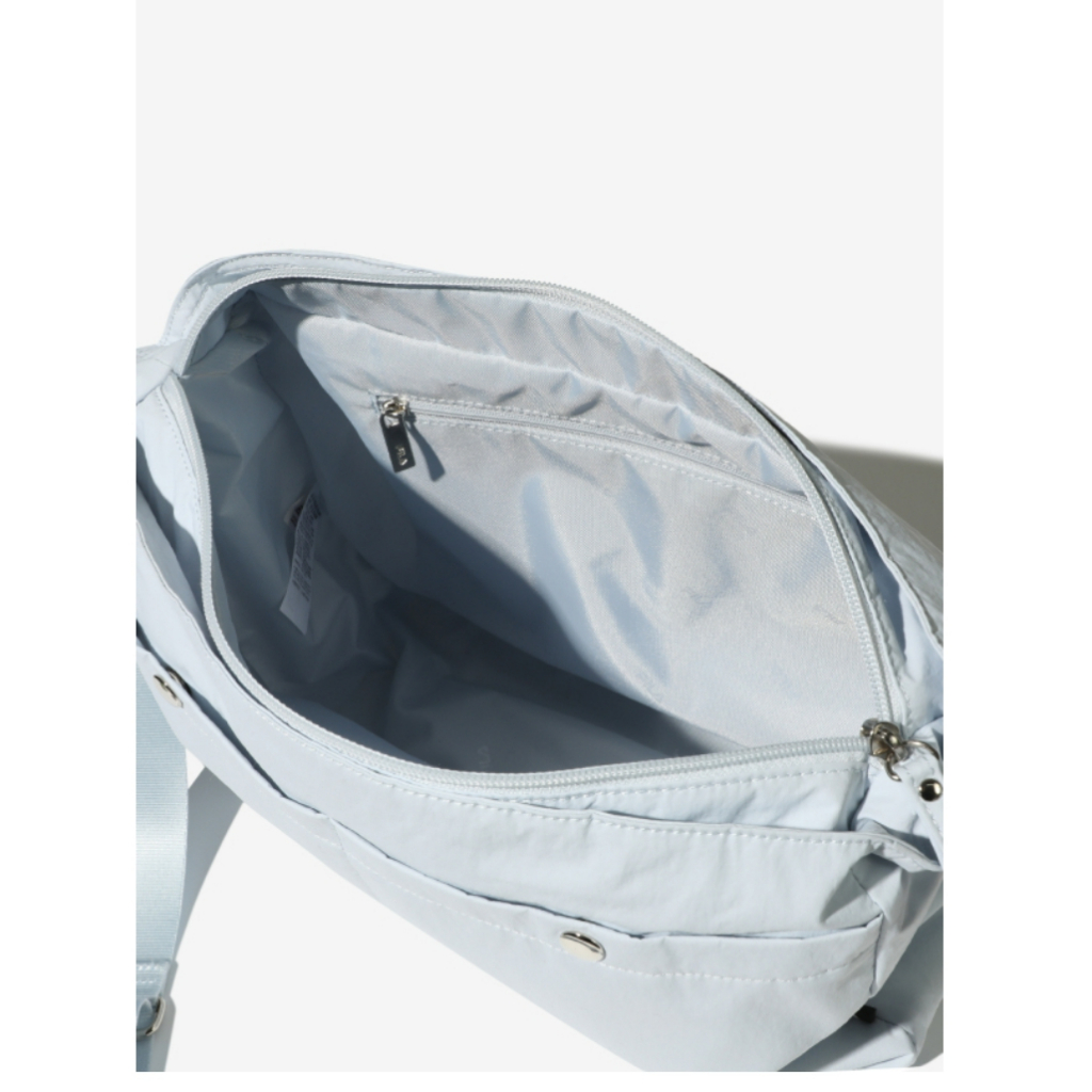 It is a horizontal crossbody bag made of light and durable lightweight nylon fabric.