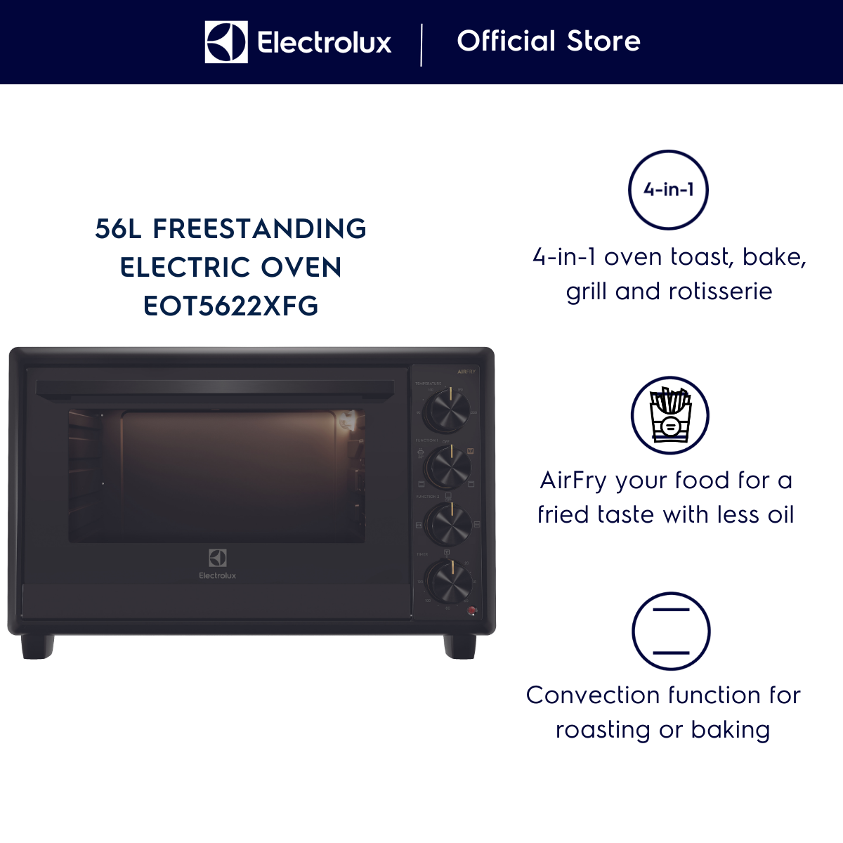 [New] Electrolux EOT5622XFG 56L Freestanding Electric Oven With Airfry Function - 2 Years Warranty