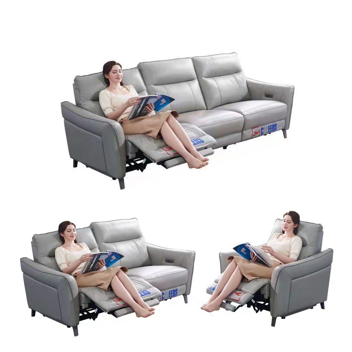 In Stock-Three-Seat Sofa [Double Electric] 1038# Light Apricot