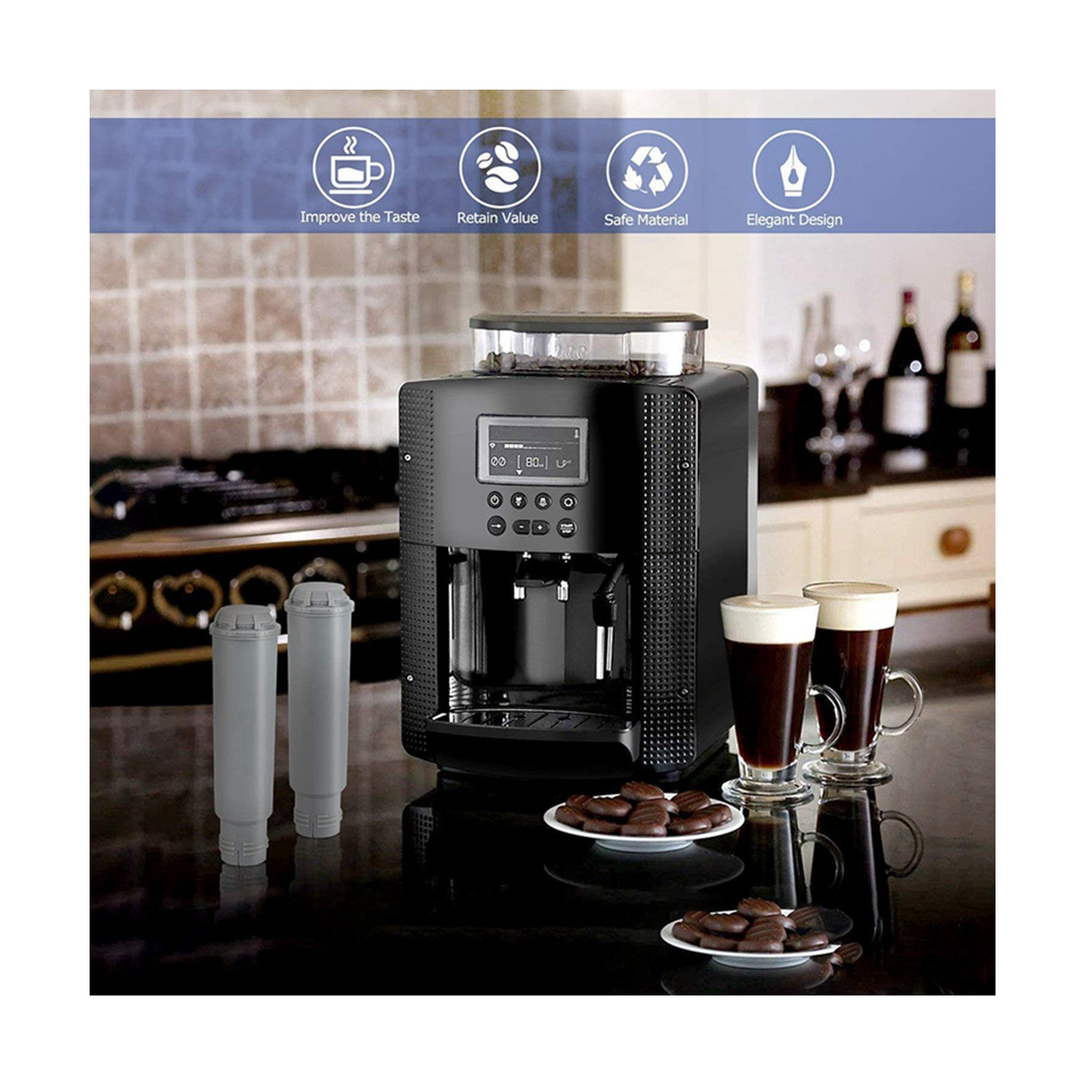 Improves Flavor: The water filter contains high-quality activated carbon that stabilizes the calcium carbonate and removes impurities such as chlorine and limescale and improves the taste of the coffee.Significantly reduces levels of chlorine, heavy metals and other harmful contaminants.
