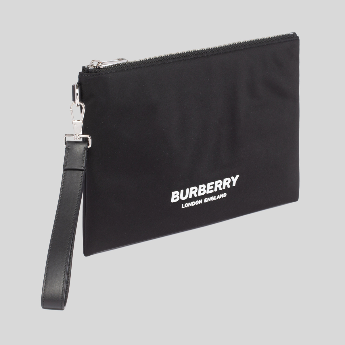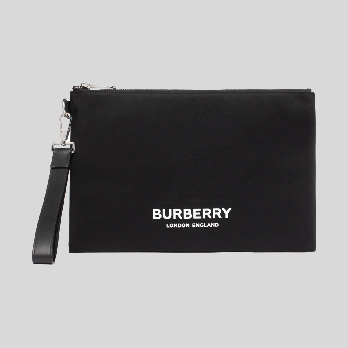 Burberry Unisex Logo Print Nylon Zip Pouch Black 80627541