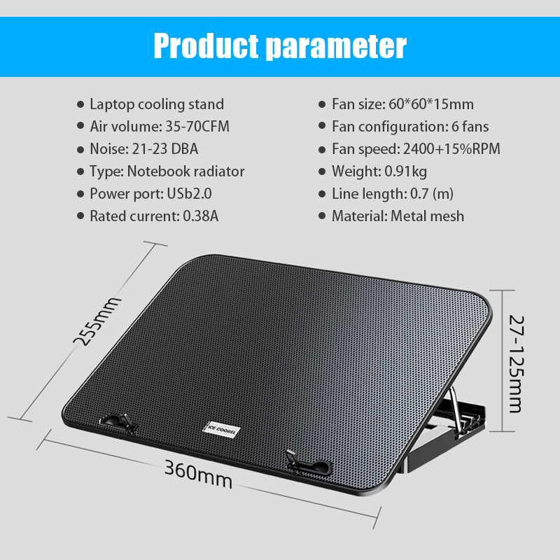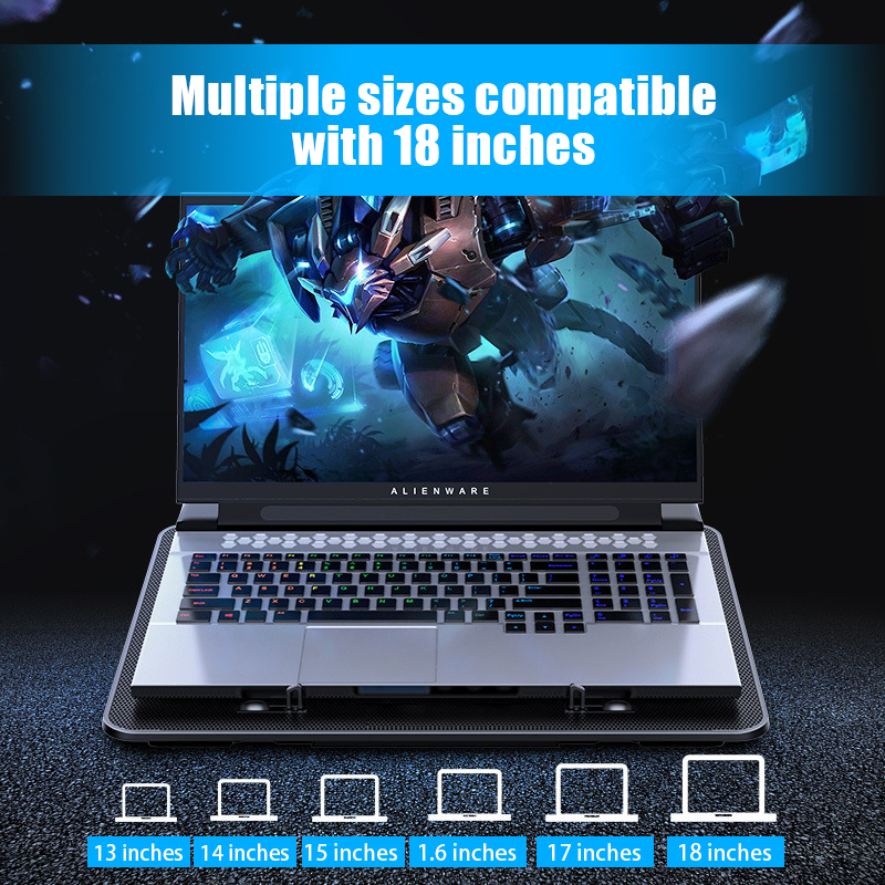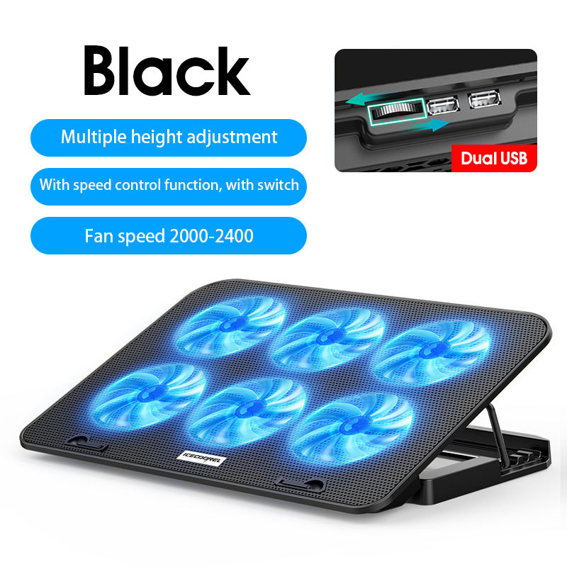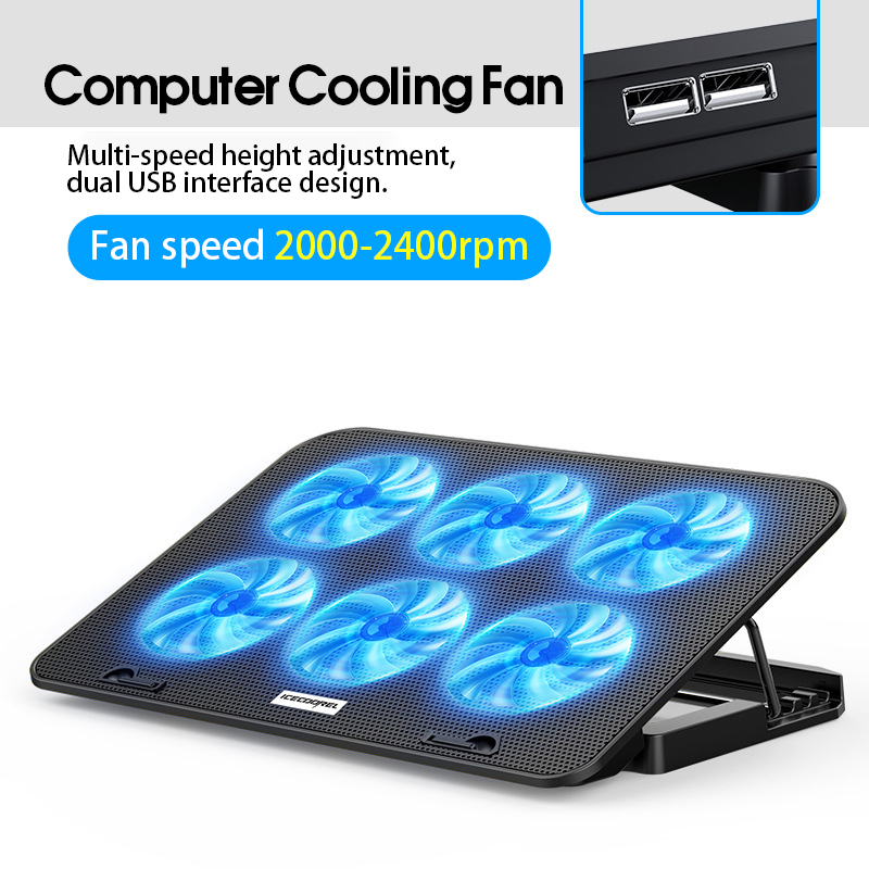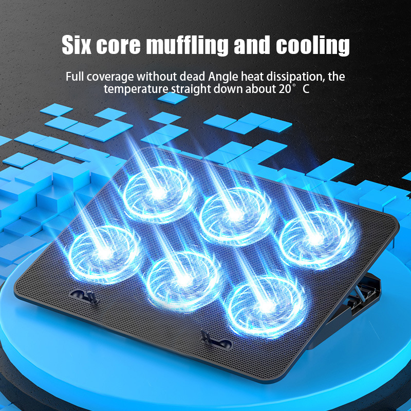 Laptop Cooler 6 Fans Notebook Laptop Cooling Pad Adjustable Height Laptop Stand Gaming Cooling Fan for 12-17 Inch