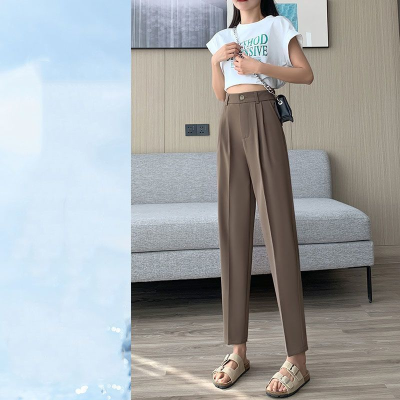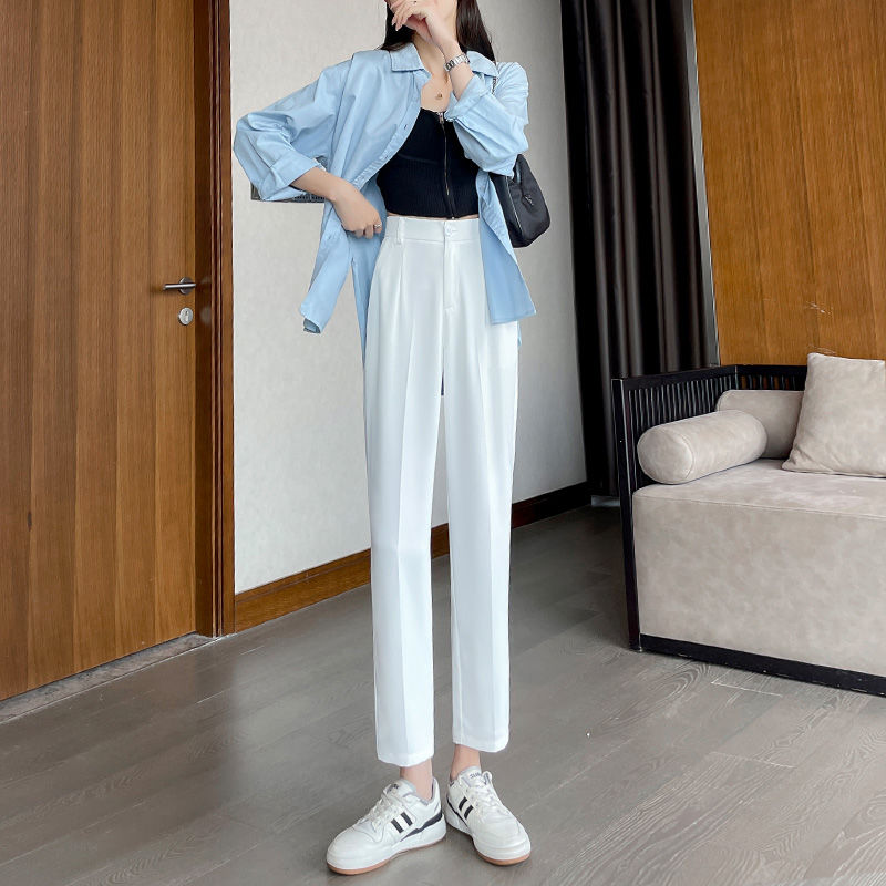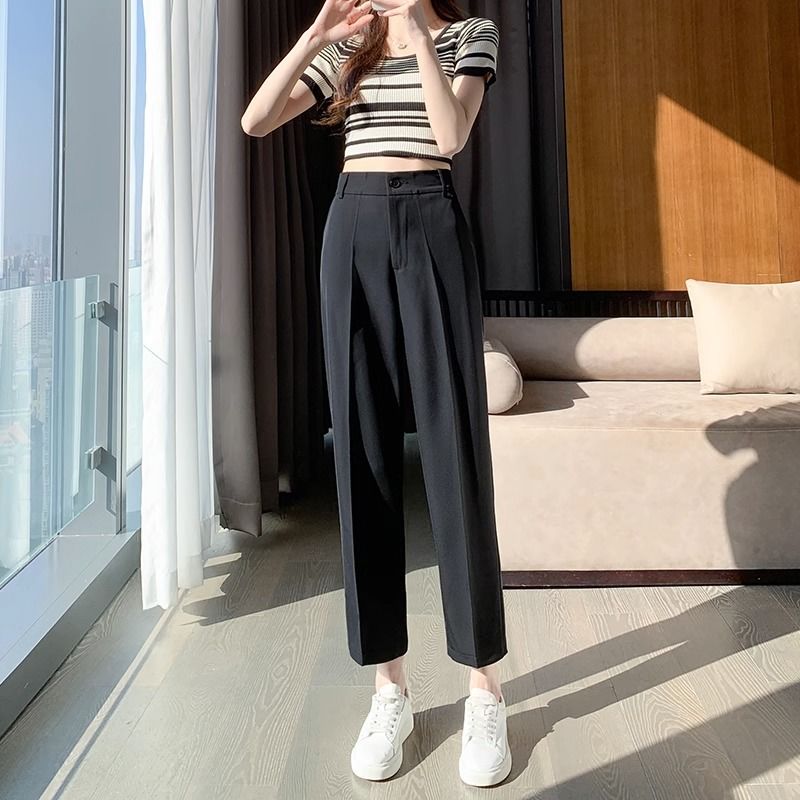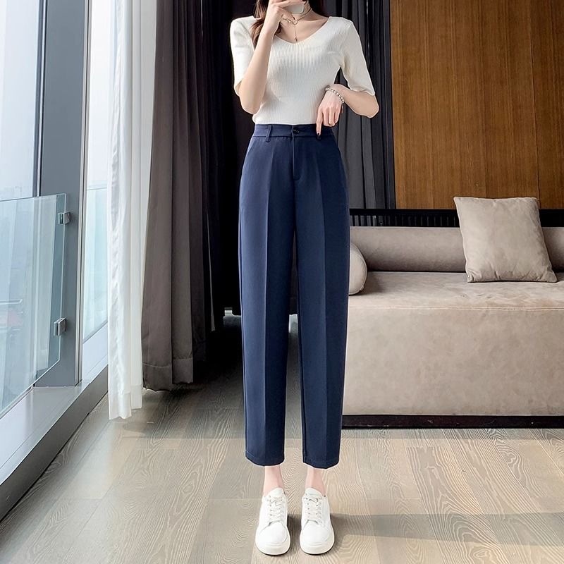 ins navy blue Suit pants for women Korean style high waist professional office fashion straight skinny pants