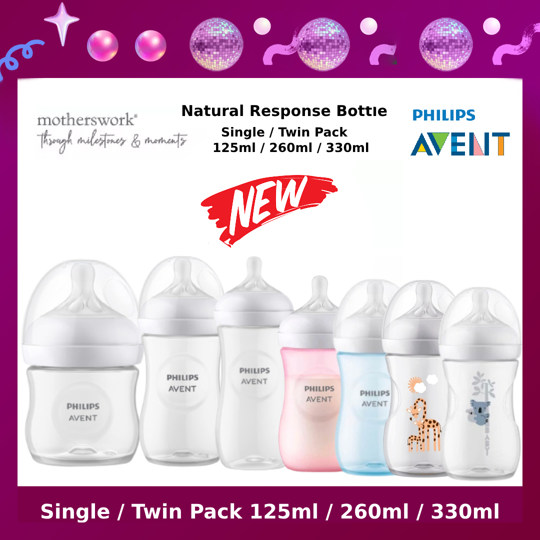 [3 Sizes] Philips Avent Baby Response Natural Bottle With Teats 125ml / 260ml / 330ml Single / Twin Pack - 0M+