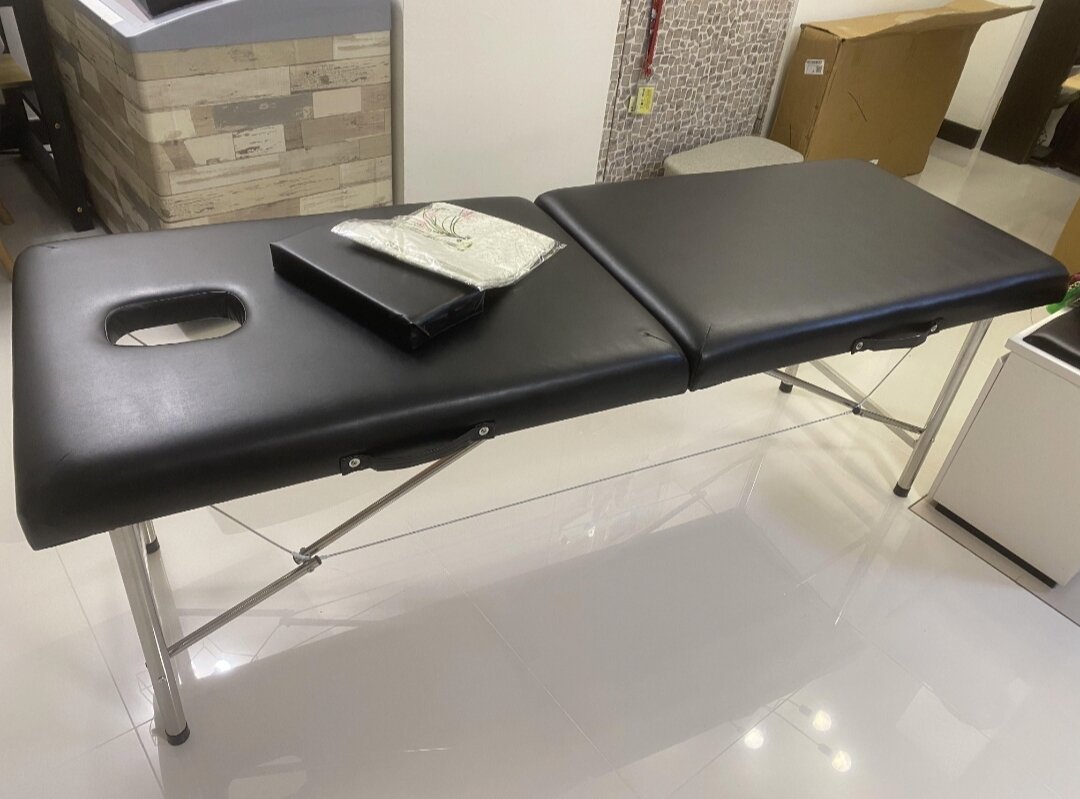 Massage bed | with pillow headrest and bedsheet | Foldable and portable | Double Frame | STRONG 250kg support | Black | option of add on Stool | for home or retail Facial, Salon, Tattoo