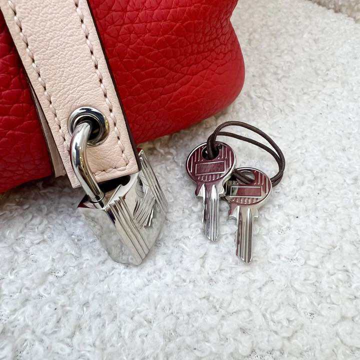 (Pre-loved) Hermes Picotin 18 in Bi-colour (Rouge Tomate Clemence / Rose Eglantine Swift) and PHW