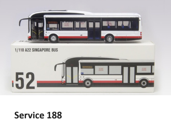 SG Seller: 1/110 Scale Singapore Bus A22 Red White Service 188 Green 190 Model
