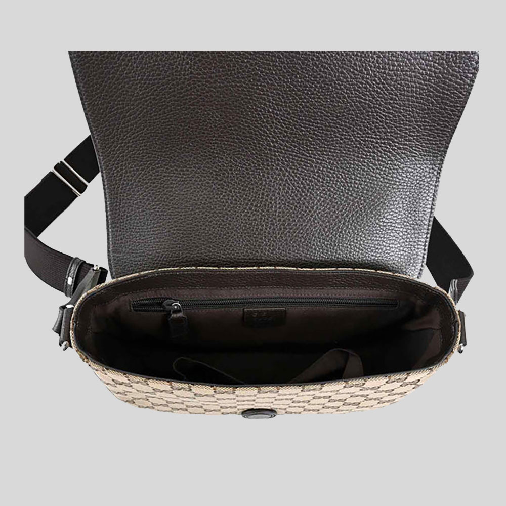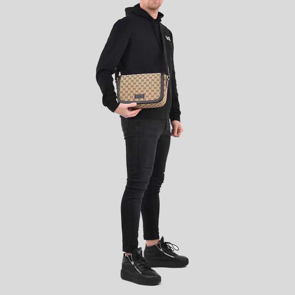 COLOUR: Beige/ebony GG Supreme canvas, with brown leather trim MATERIAL: Leather and canvas SIZE: 26 cm (L) × 18 (H) × 7.5 (D) cm PRODUCT DETAILS: Ebony Beige Canvas Brown Leather Trim GG Guccissima Pattern "Gucci" Embossed on Interior Leather Adjustable strap 1 slip pocket in front Magnetic flap closure Internal: 2 slip pockets and 1 zip pocket Made in Italy Style # 449172KY9KN9886 PACKAGING DETAILS: Packed in Gucci dustbag WARRANTY: Product does not come with any warranty services in the event of wear and tear. RETURN/EXCHANGE: Returns must be unworn, unwashed, undamaged, unused, with the store tag attached. Returns will only be accepted if the product is returned in its original condition with all provided boxes / dust bags. Exchanges are subjected to stock availability.