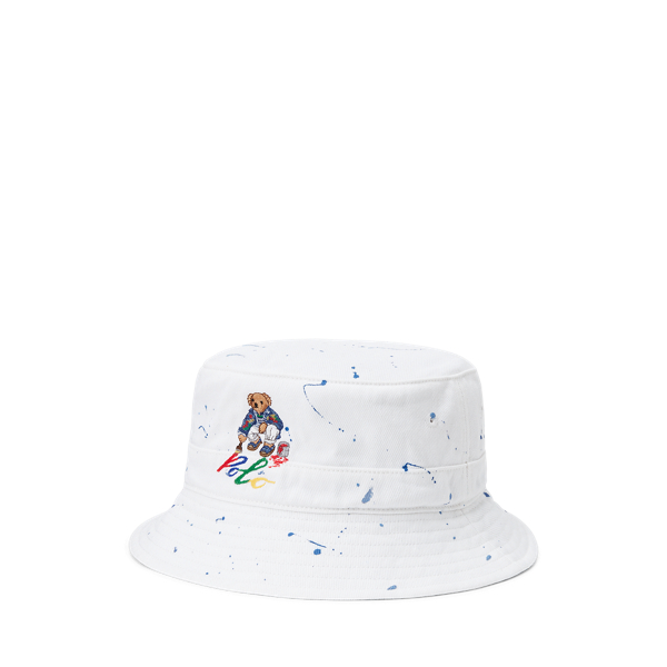 This cotton twill bucket hat depicts the Polo Bear painting a multicolored version of our iconic logo. The artistic theme is complemented by an allover paint-splatter effect.