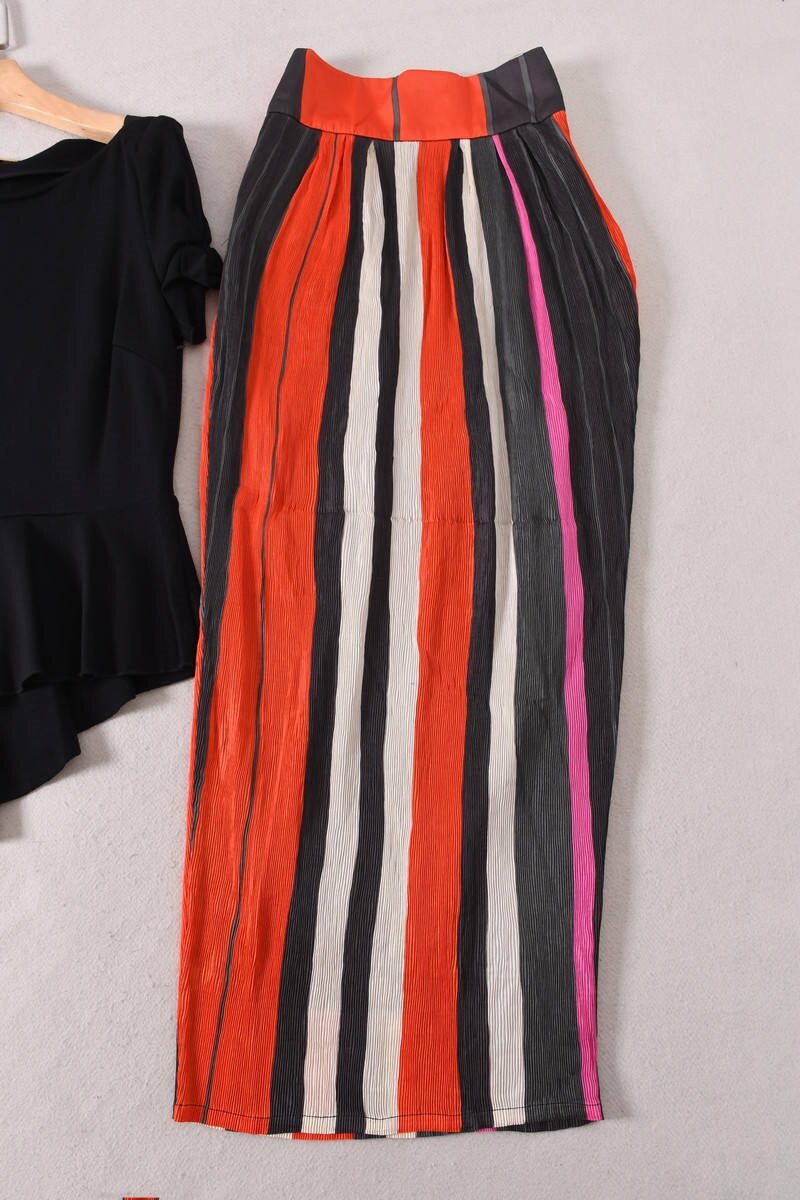 Issey Miyake Counter High Quality Miyake Style Pleated High Waist Straight Hip-Covering Skirt Long Skirt