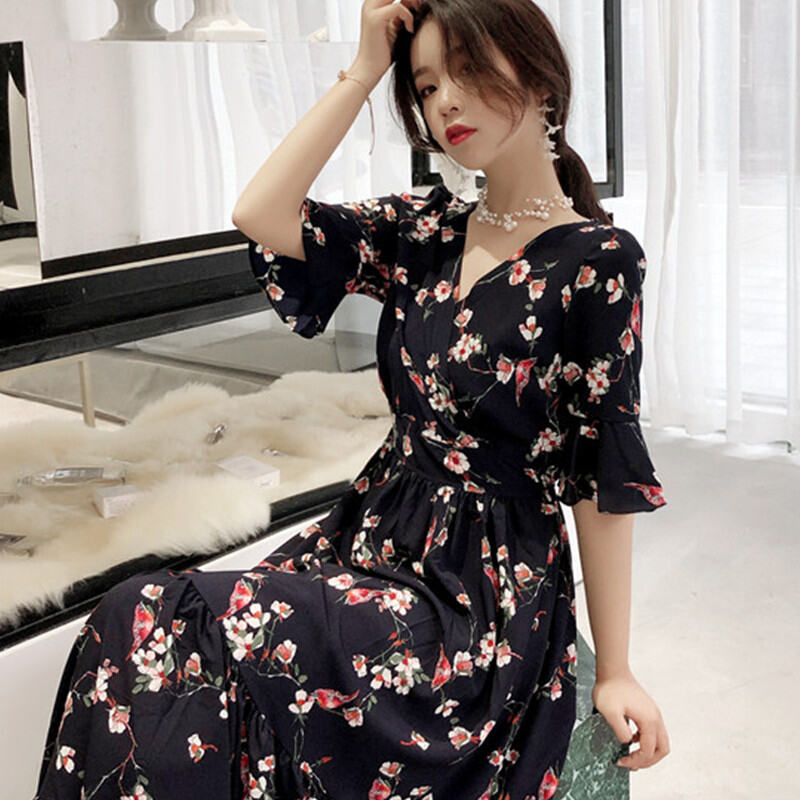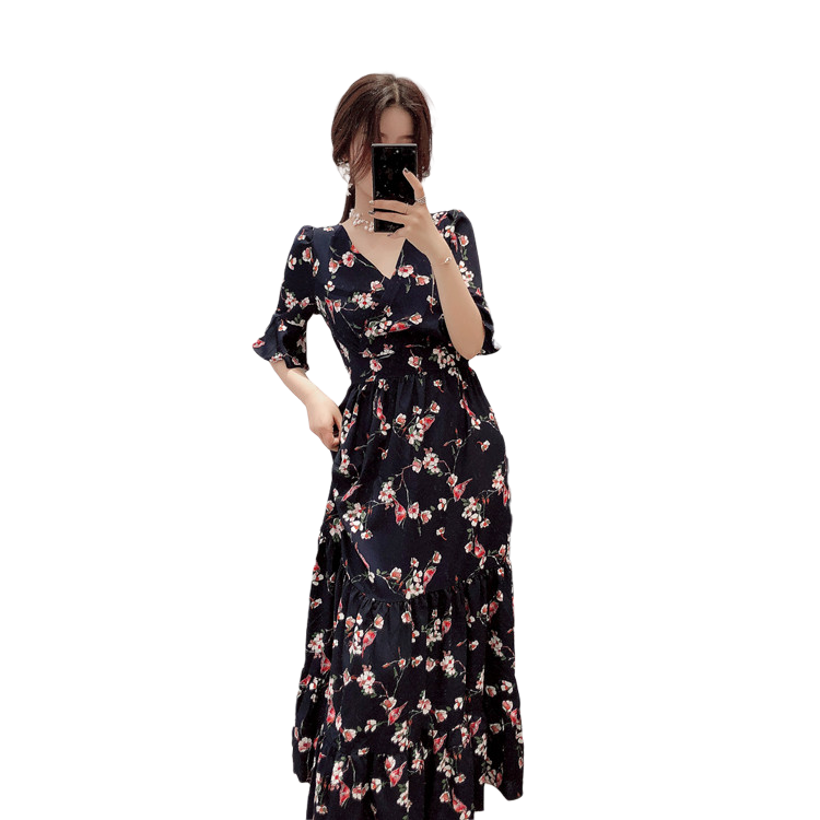 Plus Size Women's Clothing Plus Size Ladies Covering Belly Thin Super Fairy Overknee Dress Summer 2024 New Chiffon Floral Dress
