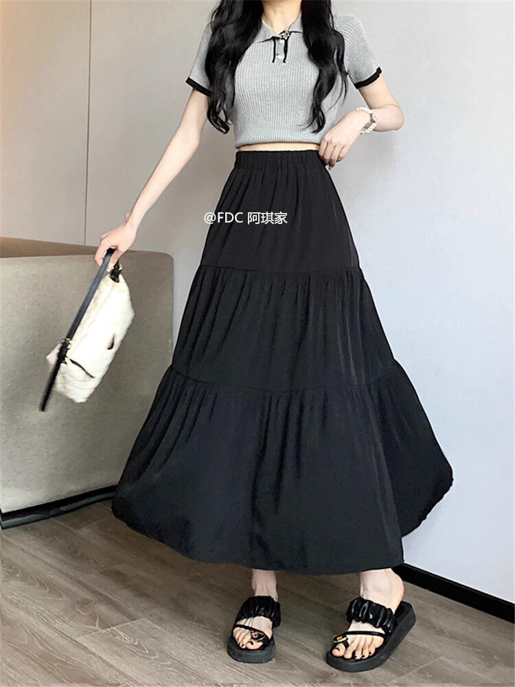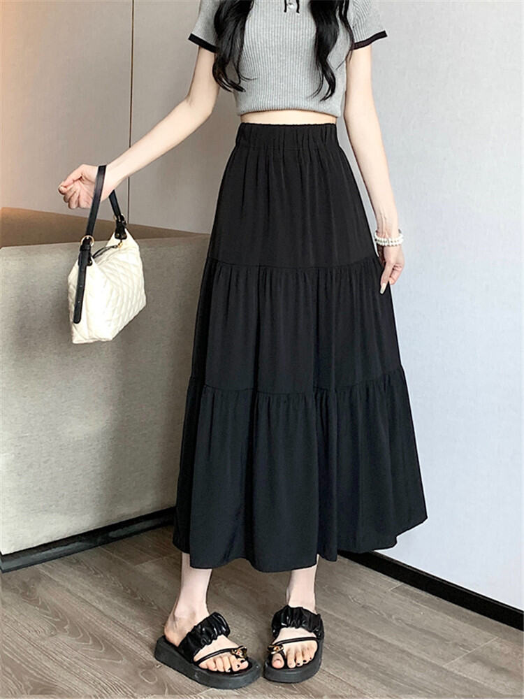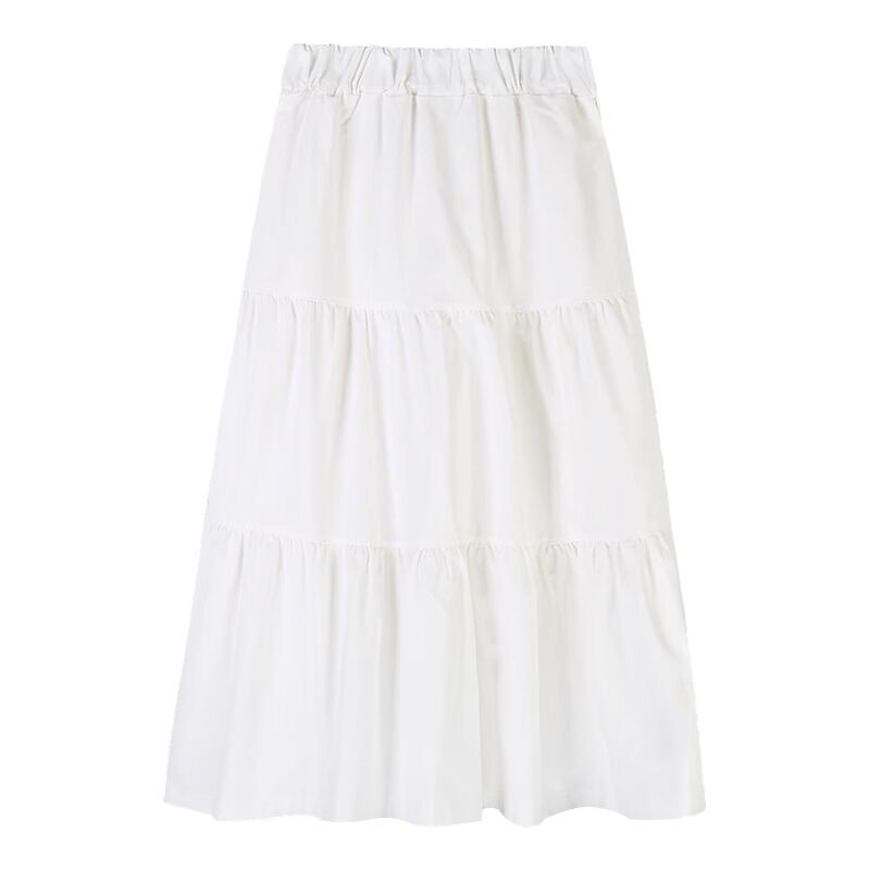 White Skirt Women's Spring and Autumn 2024 New Arrival Elastic High Waist Cover Slim Looking Mid-Length Tiered-Ruffle Dress Umbrella Skirt Ins