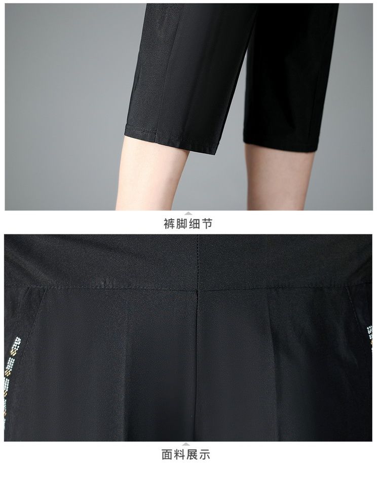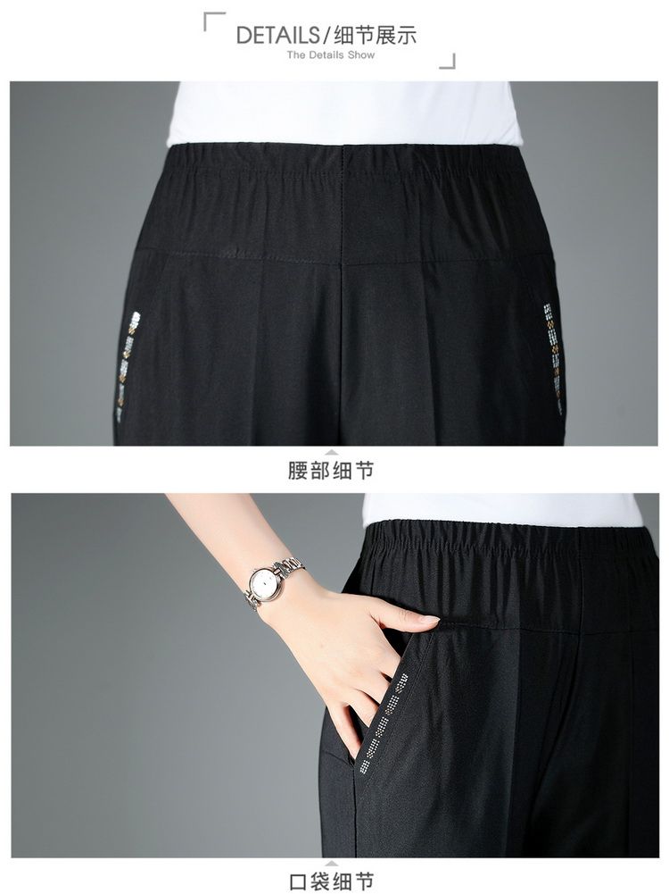 Women's High Waist Elastic Mom Loose Large Middle Aged 7/4 Pants