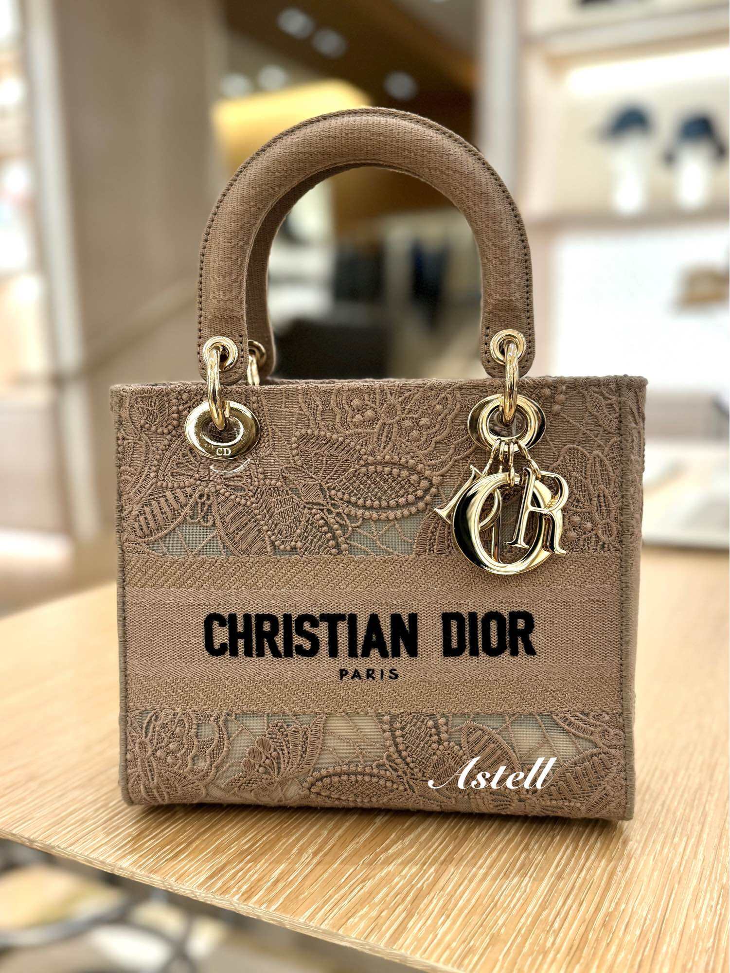 [PRE-ORDER] DIOR MEDIUM LADY D-LITE BAG BUTTERFLY MACRAME EMBROIDERY BEIGE
