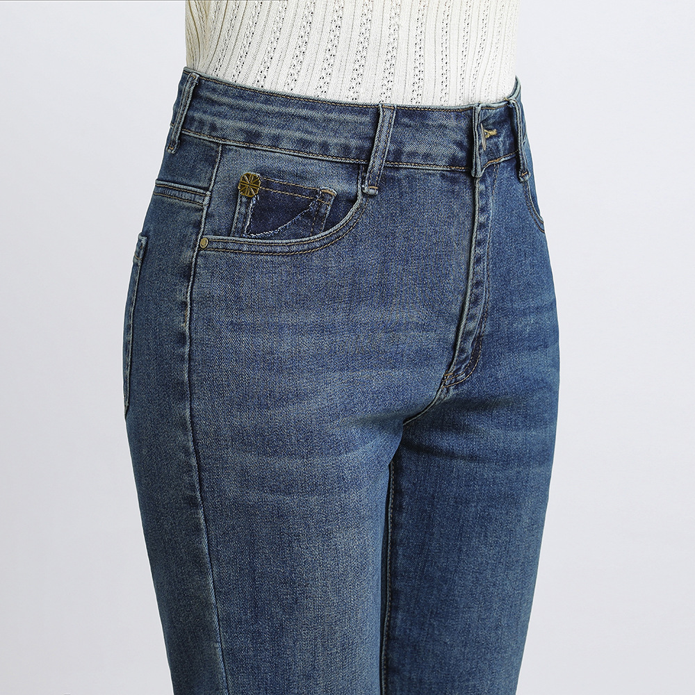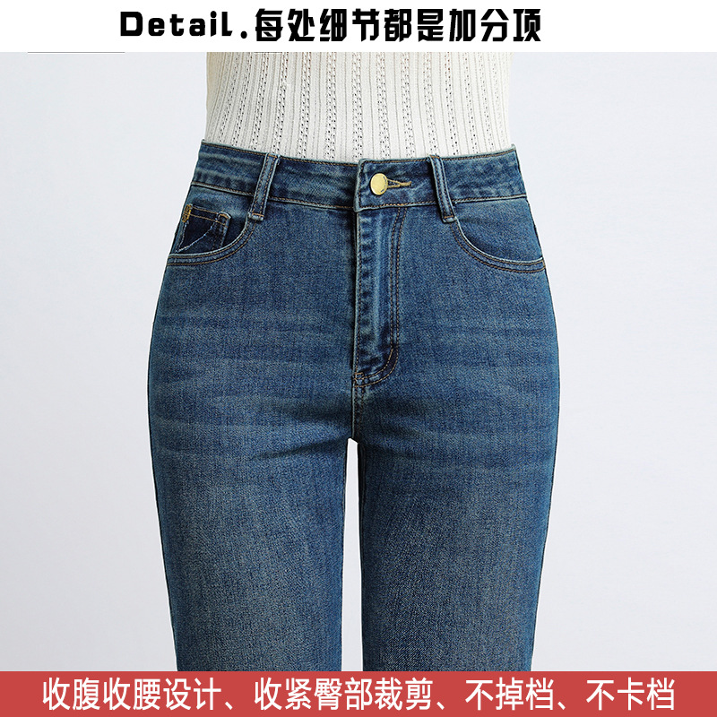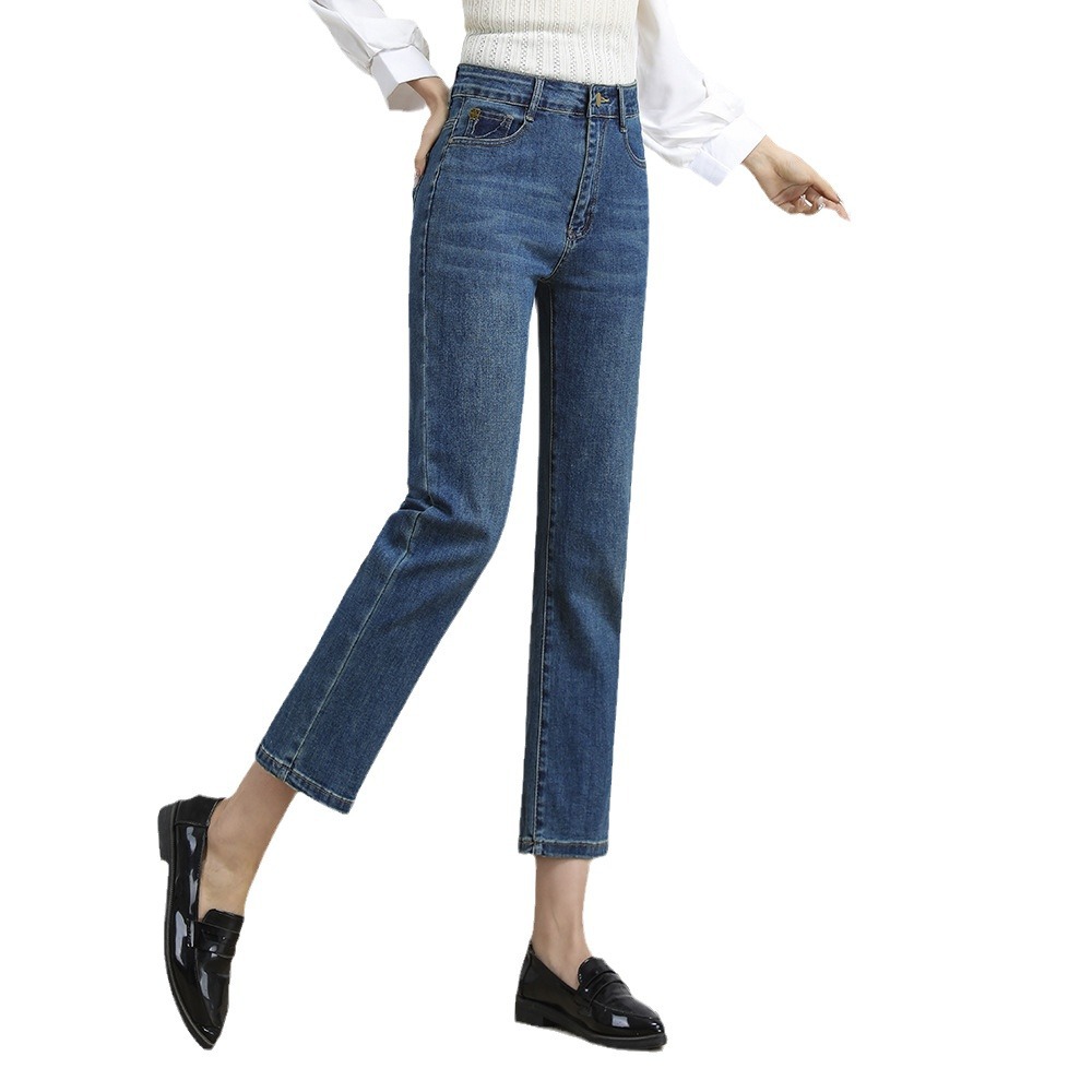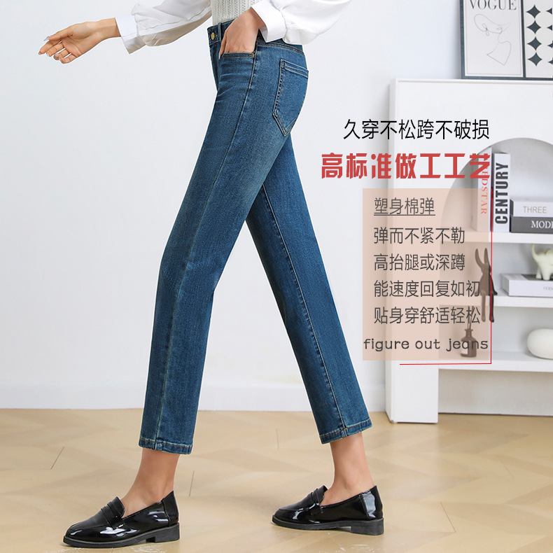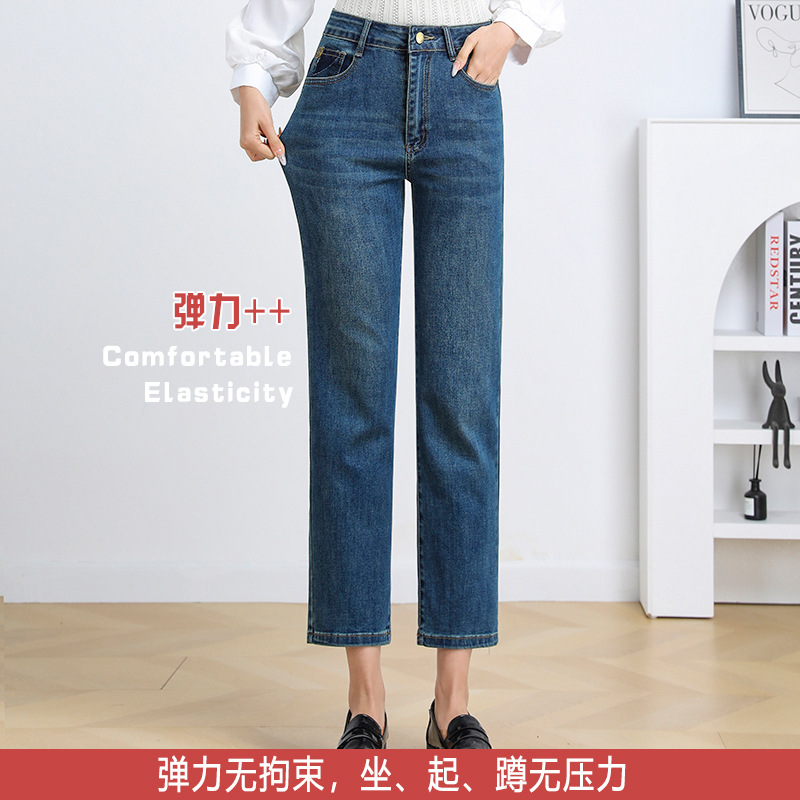 dingmei22 Nine point smoke pipe straight leg jeans chubby sister 2024 spring mid high waist elastic slim fit large size middle-aged and young women's pants dingmei22