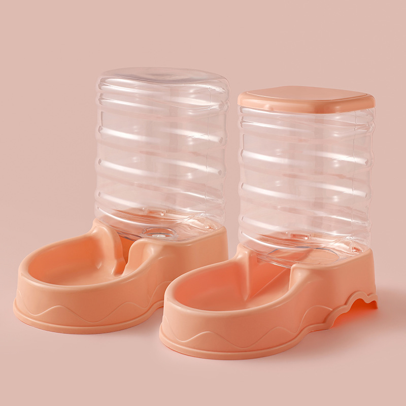 PET FEEDER AUTOMATIC: pet water dispenser suitable for small and Medium Dogs or CatsAUTOMATIC CAT FEEDER SET: Cat food dispense dry food as pets empty the bowl, prolonging time between refills.Side cut-out handles along base for easy lifting.