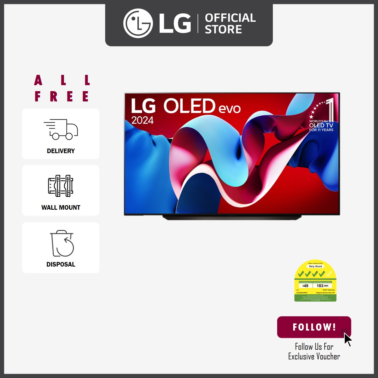 [NEW] LG OLED55C4PSA 55'' OLED evo C4 4K Smart TV + Free Wall Mount Installation worth up to $200 + Free Delivery