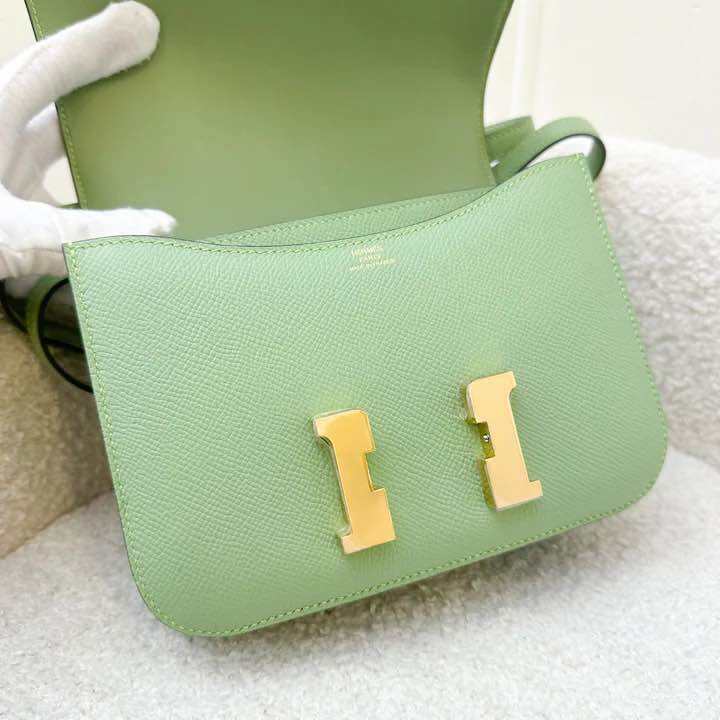 (Pre-loved) Hermes Mini Constance 18 in Vert Criquet Epsom Leather and GHW
