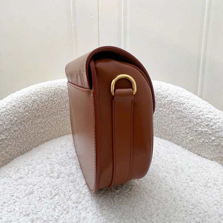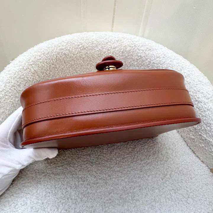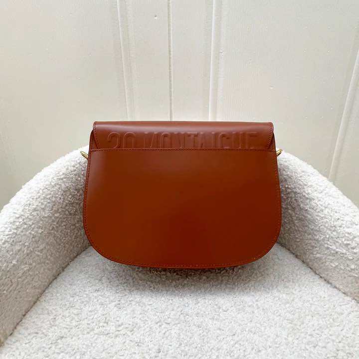 (Pre-loved) Dior Medium Bobby Flap Bag in Dark Cognac Brown Calfskin and AGHW