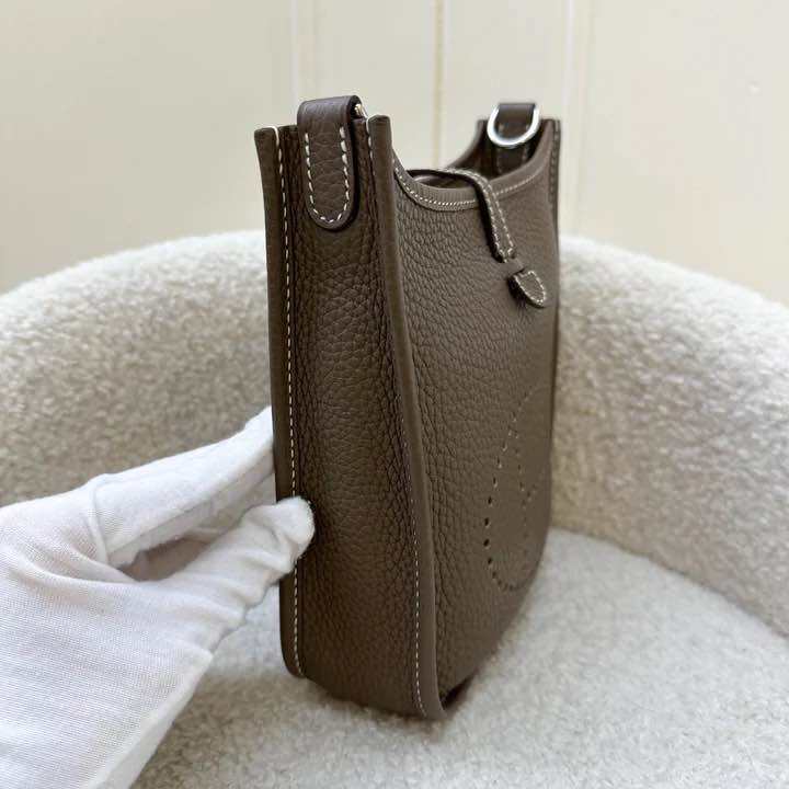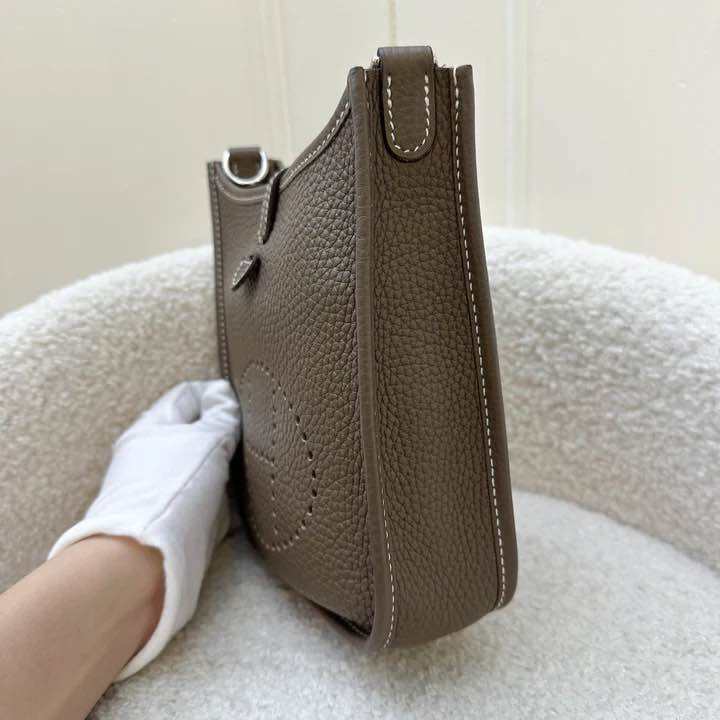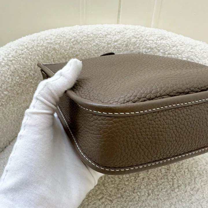 (Pre-loved) Hermes Mini Evelyne 16 TPM in Etoupe Clemence Leather with Bleu Indigo Strap and PHW