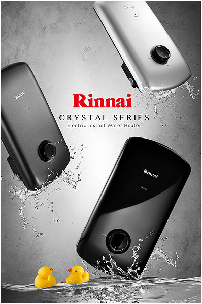 RINNAI REI-B330NP BLACK/GREY/SILVER INSTANT WATER HEATER WITH HANDSHOWER SET