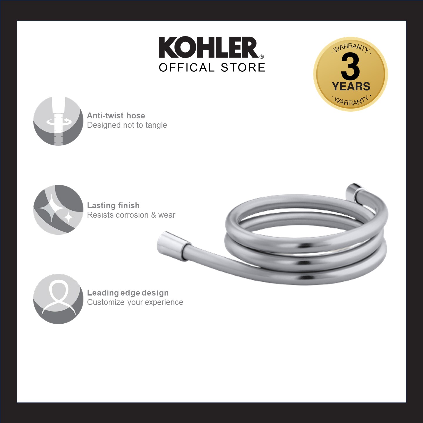 KOHLER 1.5M Anti-kink and Anti-twist Shower Hose, Polished Chrome K-R11628T-CP