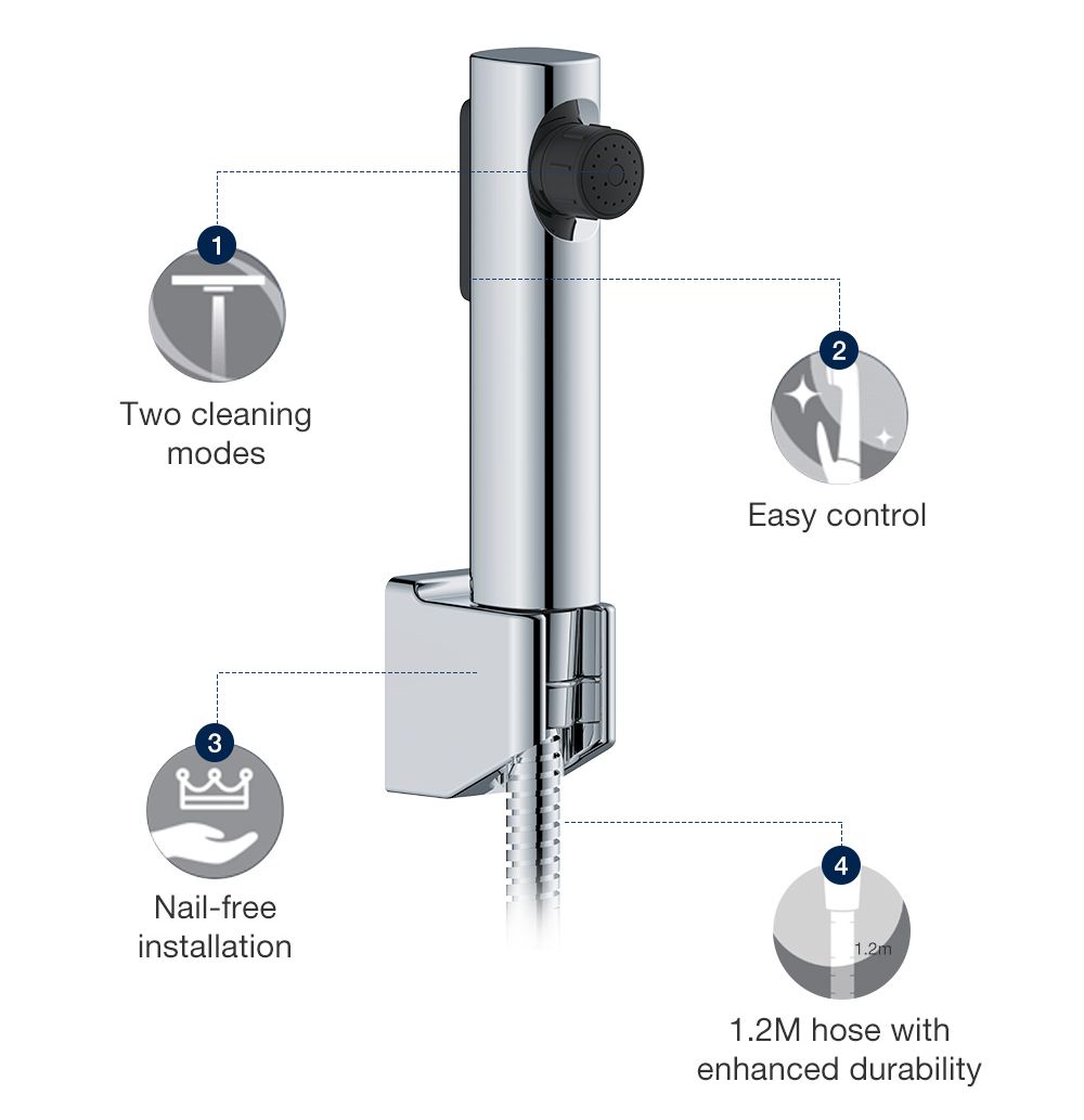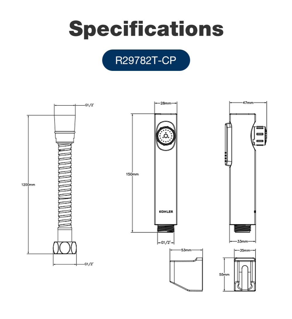 [Upgraded] KOHLER Cuff Hygiene Spray with Wall Bracket & Hose, Anti-bacterial Bidet Spray, Polished Chrome 1.0 K-98100T-B-CP / 2.0 Upgraded K-R29782T-CP