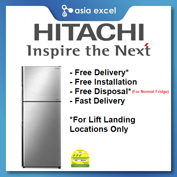 (Bulky) HITACHI R-VX450PMS9 366L BRILLIANT BLACK/BRILLIANT SILVER/PURE WHITE TOP FREEZER REFRIGERATOR
