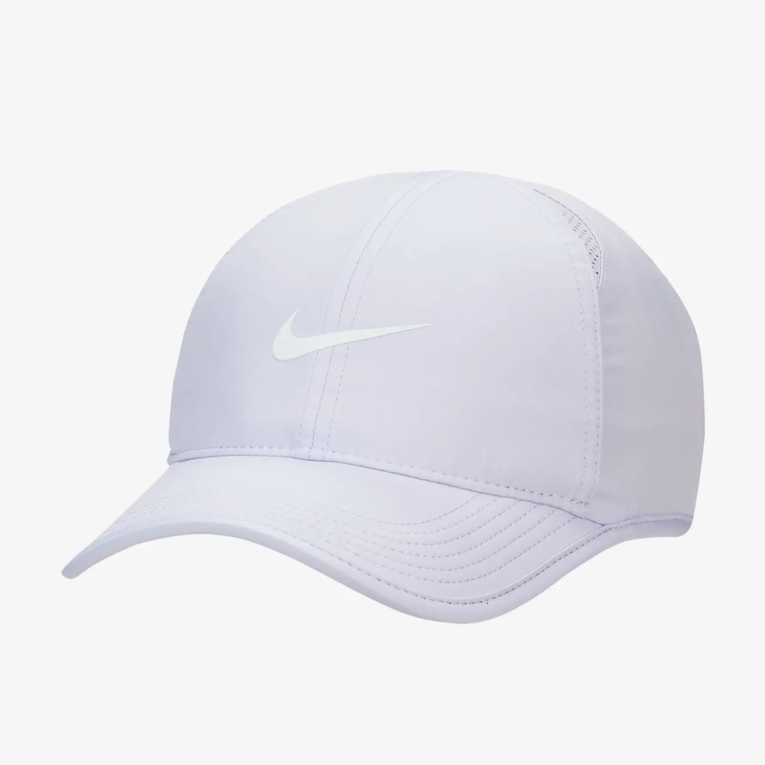 The black underbill on the Nike Sportswear AeroBill Featherlight Cap helps reduce glare so you can see more and squint less. Sweat-wicking fabric and mesh inserts help keep you feeling cool and comfortable throughout the day. Back closure adjusts for a customised fit. The ventilated design offer comfort and shade from the sun starting at the first mile to the last.